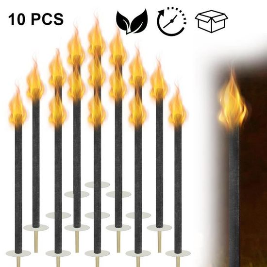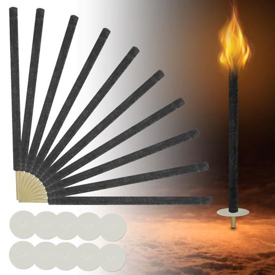 Diamètre de la torche : 3 cm. Avec système anti-goutte - Protection papier intégrée contre les taches de cire. Diamètre (poignée en bois) : 1,5 cm Consignes de sécurité : 1., Gardez toujours la torche allumée loin du visage et du corps., 2., Les torches ne doivent pas être utilisées à proximité des enfants, des animaux domestiques ou des matériaux facilement inflammables. Torches en cire - HENGMEI - 25 pièces - 72 cm - Poignée extra longue... La protection anti-goutte en papier intégrée empêche les taches de cire Matériaux 100 % naturels - Sans substances nocives. Diamètre (torche) : 3 cm Diamètre (poignée en bois) : 2cm Avantages : durée de combustion de 90 à 100 minutes Facile à allumer Bois de haute qualité, pas de formation de suie, les torches ne se désagrègent pas en se consumant. Protection maximale grâce au système anti-gouttes et aux longues poignées. Feux de torche stables et réguliers Flamme résistante au vent avec papier - Anti-gouttes. Grâce à leur design bien pensé, les torches restent stables même en cas de vent léger. Décoration Jardin Mariage Fête Extérieure Froadp Lot De 10 Torches En Cire, 72 Cm, Durée De Combustion De 100 Torches Fête Mariage Noël Décoration Polyvalent : idéal pour les mariages, les fêtes, Noël, le Nouvel An ou les fêtes dans le jardin. Poignée extra longue : manche en bois de 12 cm pour un transport sûr et confortable. Idéal pour les nuits d'ambiance dans le jardin ou lors d'événements en plein air Nos torches d'extérieur convainquent par leur longue durée de combustion allant jusqu'à 100 minutes (en position verticale et en vent normal). La flamme est résistante au vent et la cire ne coule pas tant que la torche est maintenue verticalement. Manche en bois extra long - Agréable à porter. Évitez les températures élevées et les chocs avec d'autres objets lors du stockage. Caractéristiques du produit : Matière : coton noir Dimensions : 72 cm de long x 3 cm de diamètre Longueur du corps de combustion : 60 cm Longueur poignée en bois : 12 cm Poids du produit : environ environ 18 g. Longue durée de combustion : jusqu'à 100 minutes dans des conditions normales. Avantages du produit : Matériaux 100 % naturels - Pas de substances nocives, pas de suie d'huile, entièrement respectueux de l'environnement. Combustion propre : sans additifs chimiques, sans danger pour les adultes et les enfants. Ne laissez jamais les flambeaux allumés sans surveillance., 4., Utilisez les torches uniquement sur des surfaces stables et résistantes à la chaleur ou sur des surfaces appropriées, loin des objets inflammables., 5., Conservez les torches dans un endroit sec et frais, à l'abri de l'humidité et de la lumière directe du soleil. Hengda Torche De Jardin Lampe Huile Pour Dehors Torches à Cire Torche Jardin 42cm Lot De 50 Combustion 45 Min 85665614 Elles brûlent proprement, sont respectueuses de l'environnement et idéales pour les adultes et les enfants