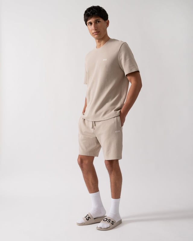 BOSS Short Waffle Homme Gris- JD Sports France Short Waffle 10269584 01., 60 % coton, 40 % polyester Short Pyjama Homme Boss BOSS - Bas De Pyjama En Coton Mélangé à Logo Brodé - Noir Short Waffle Coton Polyester Taille et coupe : le mannequin porte une taille M et mesure 189 cm avec un tour de poitrine de 98 cm, un tour de taille de 80 cm et un tour de hanches de 94 cm. Short de pyjama coupe droite BOSS, confectionné dans un mélange à structure gaufrée Short de pyjama décontracté Boss · Avec un logo brodé sur la jambe · Cordon de serrage à la taille...