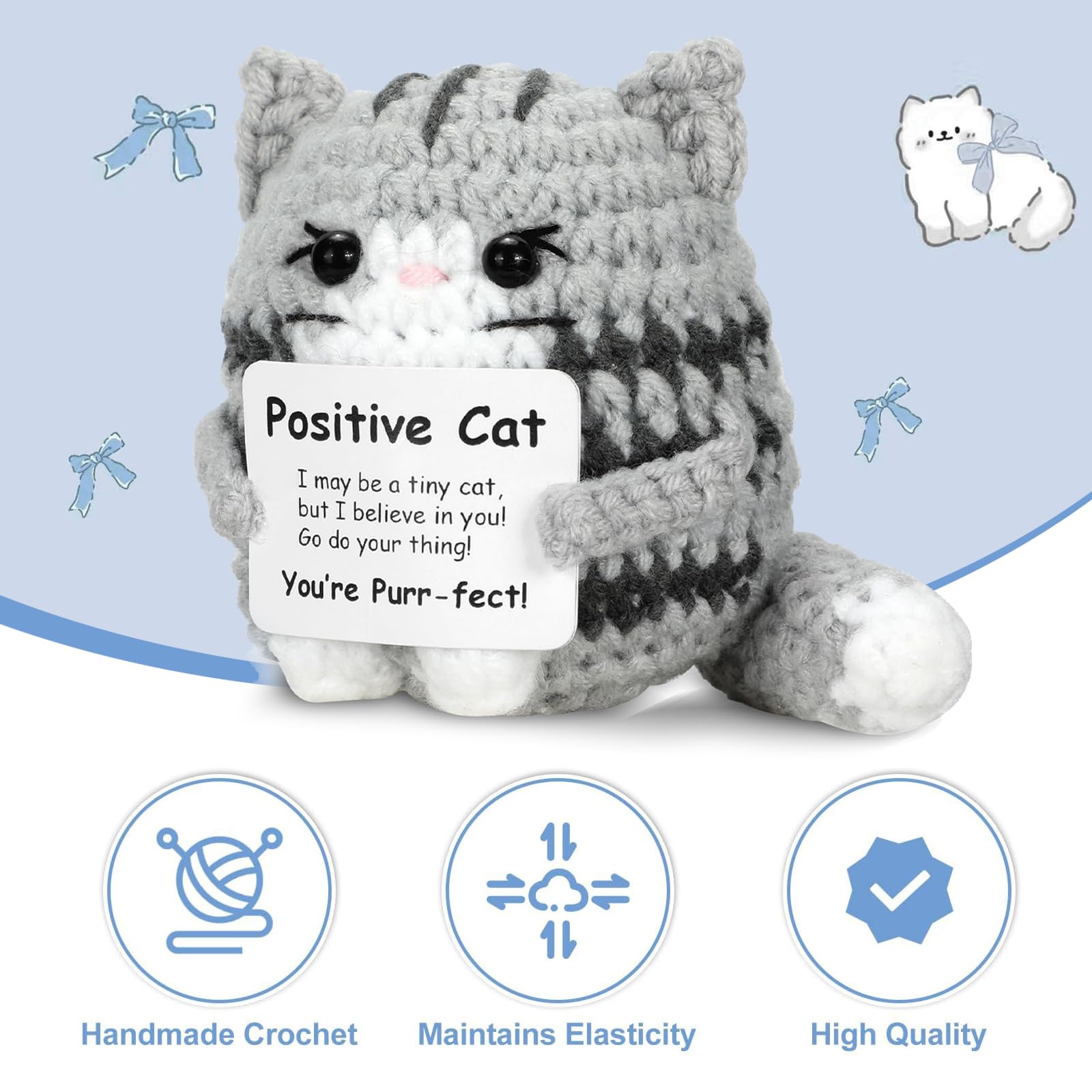 Des moustaches finement travaillées et un délicat nez rose complètent le design mignon. Poupée fleur chat positive au crochet faite main - Peluche de soutien Chaque détail est soigneusement réalisé pour créer une connexion émotionnelle immédiate Soutien émotionnel Miniature Petite Poupée Tricotée En Coton Naturel Au Crochet En Forme De Lièvre Crochet Chat Conçu pour encourager et réconforter, c'est un cadeau idéal pour les amis, apportant chaleur et soutien émotionnel. Chaque détail est soigneusement réalisé pour créer une connexion émotionnelle immédiate3., MATÉRIAUX DE QUALITÉ SUPÉRIEURE ET TAILLE COMPACTE : Fabriquée en fil doux et de haute qualité, cette poupée chat n'est pas seulement charmante, mais aussi durable. Kit de soutien émotionnel : plus qu'un simple chat positif. Ce coffret cadeau positif comprend un chat au crochet, une carte de motivation avec... Il encourage, inspire et apporte des sourires aux visages des amis et de la famille, surtout dans les moments difficiles Il peut également servir de pendentif pour sacs à main ou porte-clés – un petit ami qui vous accompagne partout et diffuse de la positivité SOUTIEN ÉMOTIONNEL EN MINIATURE : Ce petit compagnon chat en crochet est parfait pour les moments où vous avez besoin d'une énergie positive. Conçu pour encourager et réconforter, c'est un cadeau idéal pour les amis, apportant chaleur et soutien émotionnel Il encourage, inspire et apporte des sourires aux visages des amis et de la famille, surtout dans les moments difficiles5., UTILISATION VERSATILE EN DÉCO ET COMPAGNON : Avec son design mignon, ce chaton en crochet n'est pas seulement un jouet, mais aussi un accent décoratif pour votre table, étagère ou voiture. Idéale pour le sac, le sac à dos ou le bureau – toujours à portée de main pour garder des sentiments positifs à proximité4., CADEAU IDÉAL POUR TOUTE OCCASION : Que ce soit pour un anniversaire, Noël ou juste comme ça – ce petit compagnon chaton est un cadeau réconfortant. SOUTIEN ÉMOTIONNEL EN MINIATURE : Ce petit compagnon chat en crochet est parfait pour les moments où vous avez besoin d'une énergie positive. 1., SOUTIEN ÉMOTIONNEL EN MINIATURE : Ce petit compagnon chat en crochet est parfait pour les moments où vous avez besoin d'une énergie positive. Idéale pour le sac, le sac à dos ou le bureau – toujours à portée de main pour garder des sentiments positifs à proximité
