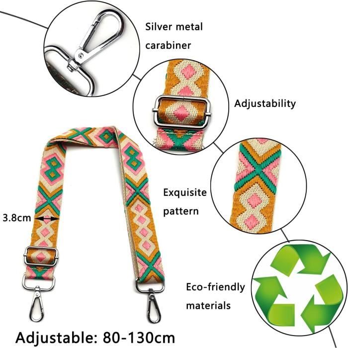 Motif Floral Breloque Rose Sangles De Rechange Pour Sac à Main En Cuir, Poignées De Bandoulière Sangle Pour Sac Original Sangle Cuir Réglable Bandoulière En Cuir Réglable Pour Mini Sacs - Sangle Noire Avec 2 Adaptateurs - Longueur 95-125 Cm - Idéale Pour Sacs à Main Et Sacs Crossbody Sangle Cuir Noir Adaptateurs Sac à main,Sangle de sac à main colorée en Nylon pour femmes... Contenu : Cet ensemble comprend une chaîne en or. Son pendentif classique en or clair et sa fleur rose complètent parfaitement tous les sacs et toutes les tenues. Vous pouvez également l'offrir à vos proches. Chaînes de sac à main à breloques : Nos chaînes de rechange sont décorées de breloques roses, éclatantes et attrayantes. Haute qualité : cette rallonge de sac à main est fabriquée en alliage de zinc, qui ne se décolore pas, ne s'use pas et ne se déforme pas facilement et peut être utilisée avec votre sac pendant une longue période, créant un effet de bijoux charmant. Que vous souhaitiez moderniser le look de votre sac ou changer de style, il vous suffit de remplacer la chaîne. Elles conviennent aux sacs à main, portefeuilles, etc. Miss Lulu Bandoulière réglable pour sacs, sangles de rechange de 3,8 cm de large, sangle rétro pour sac à bandoulière, accessoires de bricolage pour sac à bandoulière 4,7 (175) Plus de 50 achetés au cours du mois dernier 586€ Livraison GRATUITE mar. 13 janv. pour votre première commande