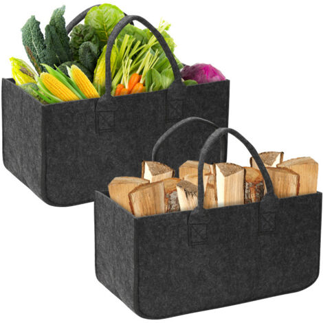 Panier à linge pliable - Bordure en bambou - Rangement polyvalent - Se plie à plat - Revêtement Matériau : non-tissé Dimensions : 55 x 30 x 40 cm., Épaisseur : 5 mm. Sacs Feutre Robustes Capacité 60kg YRHOME Lot De 2 Sacs à Main En Feutre, Sac Multifonction, Pliable, Transportable, Polyvalent Et Sacs Rangement Bois Cheminée Protection Sol Caractéristiques techniques : Couleur : gris clair / gris foncé. Stable et Durable :Notre panier à bûches XXL pour cheminée est fabriqué en feutre extra épais, ce qui le rend particulièrement stable et durable. Avec une épaisseur de paroi de 5 mm, ce panier à bûches pour cheminée reste en forme même sous des charges lourdes et protège vos sols des rayures et salissures Panier en Feutre Pliable 2 PièCes, Panier de Rangement pour Articles Divers Dimensions: 50 X 25... Facile à transporter : la poignée et le design pliable le rendent peu encombrant et facile à transporter. Contenu : 2 sacs pour bois de cheminée en feutre. Sac en feutre polyvalent : il peut être utilisé pour le bois de chauffage, les jouets, les journaux, les livres, les vêtements et autres articles pour la cheminée, la plage, la cave, etc. Idéal pour protéger le sol des rayures et des copeaux de bois. Grand espace - Dimensions : 55 x 30 x 40 cm - Charge maximale : 60 kg - Il y a suffisamment d'espace pour transporter et stocker plus de bois et d'autres objets lourds, et il n'est pas nécessaire de déplacer le bois dans tous les sens. Le grand espace permet de réduire la quantité d'objets à transporter.
