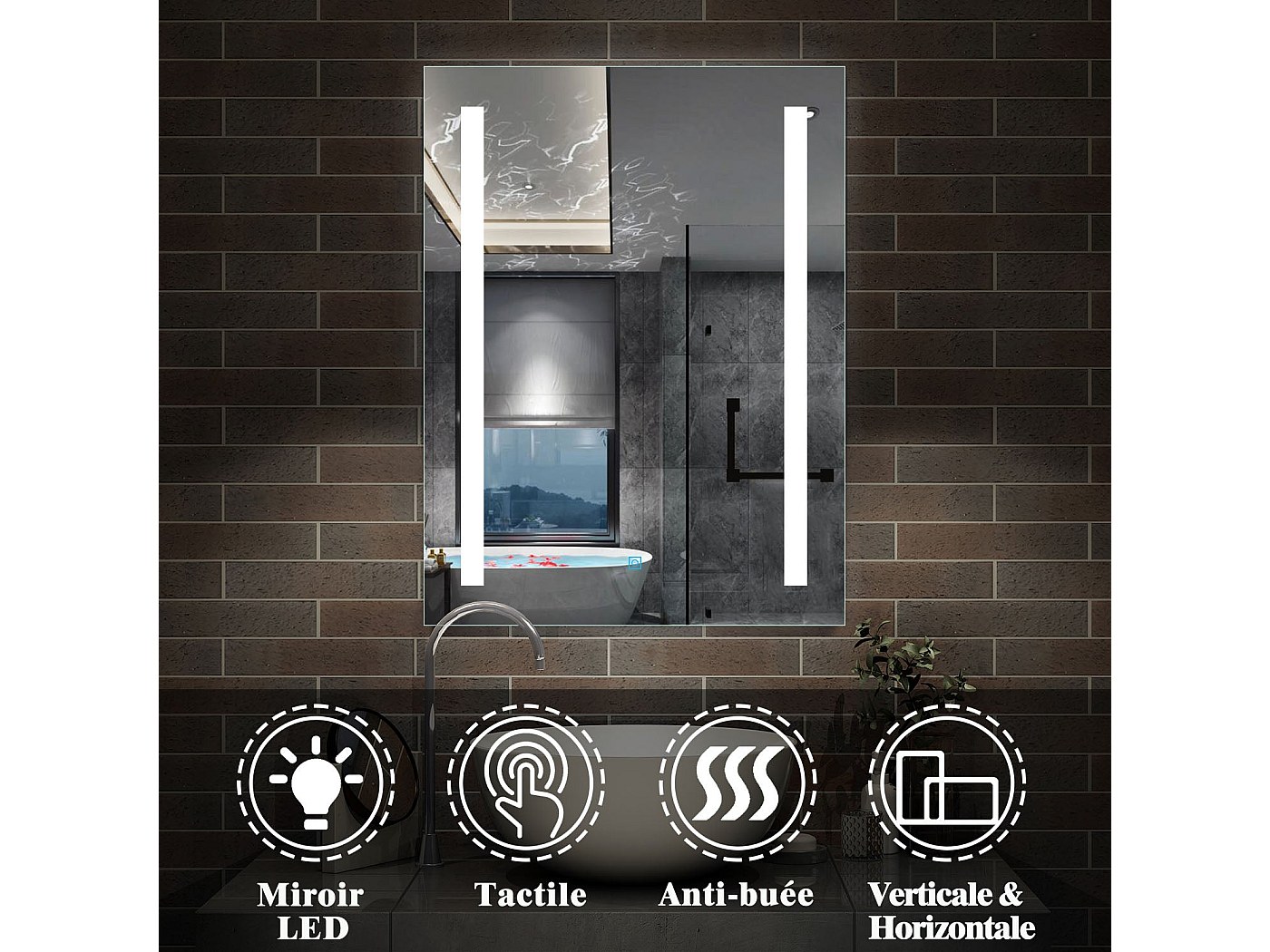Eclairage Led Dimmable 3 Couleurs Miroir Lumineux à LED En Forme D'arche, Miroir De Salle De Bain Anti Miroir Arche Miroir Salle de Bain LED | Arche - Miroir émoi Miroir Lumineux à LED en Forme D'arche, Miroir De Salle De Bain Anti-buée, 40X80CM|50X80CM|60X90CM, Dimmable 3 Couleurs (3000K-4000K-6000K),Miroir Cosmétique... Il s'agit non seulement d'un miroir de coiffure pratique, mais aussi d'un article à la mode qui rehausse le style de la maison. Fonctionnement par touche tactile : 1., Cliquer sur l'interrupteur tactile : changer la couleur de la lumière, température de couleur réglable 3000K (lumière chaude) - 4000K (lumière neutre) - 6000K (lumière blanche)., 2., appuyer longuement sur l'interru Miroir de salle de bains élégant : Design arqué avec deux options de style, brisant la forme traditionnelle du miroir, des lignes de miroir lisses, rendant votre salle de bain plus élégante. Ce miroir de salle de bain arqué intelligent est un mélange parfait d'esthétique à la mode et de fonctions pratiques, un profil arqué pour l'espace de la salle de bain pour ajouter des lignes dynamiques, deux styles au choix ; bande lumineuse LED, lumière blanche, lumière chaude, lumière naturelle réglable en trois couleurs, grâce à la commande tactile intelligente pour commuter à volonté, et une fonction de désembuage clé, de sorte que le miroir est toujours clair et lumineux. Miroir de salle de bains antibuée : le miroir a une fonction antibuée, grâce au principe de chauffage pour jouer le rôle d'antibuée, il y a un interrupteur tactile sur le miroir, lorsque le désembueur commence à fonctionner, le miroir reste clair. Miroir en verre HD : la surface du miroir est lisse et plate, l'image est claire et non déformée ; la surface du miroir est traitée avec un film antidéflagrant pour garantir que les fragments n'éclabousseront pas en cas d'impact accidentel, les miroirs de salle de bain personnalisés et élégants sont un excellent choix pour la décoration de la maison ! Utilisation : peut être utilisé comme miroir mural, miroir de salle de bains, miroir décoratif, miroir de maquillage, miroir de beauté, miroir d'habillage, miroir d'entrée, miroir de rasage, miroir de douche, c'est un excellent choix pour la vie à la maison. Miroir De Salle De Bain HD en Forme D'arche, Miroir De Maquillage LED Intelligent, Miroir Mural, Affichage De L'heure Et De La Température, Désembuage en Un Clic (40 * 70cm
