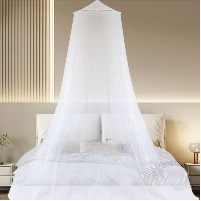 Grande Moustiquaire Filet Baldaquin, Moustiquaire Dôme Polyester, pour... 【Protection totale】Notre moustiquaire est conçue avec un haut dôme qui entoure complètement votre lit pour créer une zone de protection complète afin de garantir que la qualité de votre sommeil ne soit pas perturbée par les moustiques, vous offrant ainsi une protection totale. 【Facile à installer】Notre installation ne nécessite pas de percussions et de barres de soutien, il suffit de faire pivoter le crochet au plafond et d'accrocher le filet où vous le souhaitez. Moustiquaire De Lit Pliable Moustiquaire De Lit,Moustiquaire De Lit En Forme De Dôme,Moustiquaire Filet Baldaquin Moustiquaire Dôme Blanche 250x900cm 【Matériel de haute qualité】Notre moustiquaire est faite de matériel de fibre de polyester de haute qualité, doux et confortable, pas facile à déchirer, conception de maille, non seulement efficace contre l'invasion de moustiques, mais peut également garantir une bonne ventilation, vous permettant d'avoir un environnement de sommeil confortable et la tranquillité. Matériau de Haute Qualité: Cette moustiquaire est fabriquée en polyester sans produits chimiques qui ne provoque pas d'irritation de la peau 【Le forfait comprend】Vous recevrez 1 moustiquaire blanche avec crochet, les dimensions de la moustiquaire sont: hauteur: 2,5 m, diamètre de l'anneau: 0,6 m, rayon inférieur: 9 m, convient à tous les lits, du lit simple au lit double, lit bébé, etc. Moustiquaire,Moustiquaire de Lit, Moustiquaire Mongolia,Moustiquaire Lit Grande pour Lit Bébé