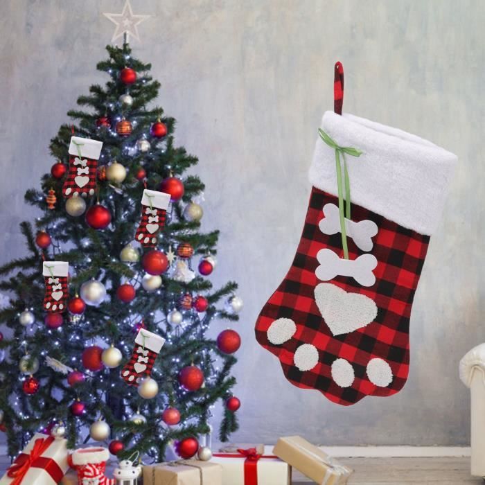 Chaussette De Noël Cheminée Chevet Suspendu Sac Cadeau De Noël Bas Noël Animaux De Compagnie Bas De Noël à Suspendre En Forme De Patte De Chien Pour Arbre A Chat Noel Description du produit La jolie forme de patte de chien ajoute une touche ludique et adorable, ce qui rend ces chaussettes parfaites pour les amoureux des animaux de compagnie ou les familles avec des amis à fourrure. Ils seront sûrs d'être un succès lors de vos réunions de vacances, apportant sourire et rires sur le visage de tout le monde Description : Améliorez vos décorations de vacances avec ces 2 chaussettes de Noël en forme de chat à suspendre avec pattes de chat ou de chien, spécialement conçues pour apporter une joie festive à n'importe quelle maison., ., Mesurant 10 x 15,4 pouces, ces bas en tissu doux offrent un espace parfait pour stocker de petits cadeaux, friandises et jouets pour vos animaux de compagnie bien-aimés, s'intégrant parfaitement aux arbres de Noël, aux manteaux de cheminée ou ailleurs dans votre maison., ., Dotés de charmantes empreintes de pattes de chat et de chien, ils ajoutent une personnalité et une chaleur uniques à votre collection de chaussettes de Noël pour chats et chiens., ., Les boucles de suspension robustes rendent l'installation facile et sécurisée, garantissant que vos bas restent en place tout au long de la période des fêtes., ., Ces bas de Noël allient charme festif et taille pratique tout en conservant l'artisanat pour durer pendant de nombreuses saisons de vacances., ., Idéales pour les propriétaires d'animaux à la recherche de décorations de Noël spécifiques à leur animal, ces chaussettes améliorent à la fois l'attrait visuel et la chaleur émotionnelle de vos célébrations, rendant chaque moment de vacances spécial pour vous et vos amis à quatre pattes., ., Caractéristiques :., ., -Couleur : Rouge + Gris., ., -Matière : Non-tissé, polaire., ., -Taille : 25,5x39 cm/10x15,4 pouces., ., Remarque : Mesure manuelle, veuillez permettre de légères erreurs de taille., ., Les couleurs peuvent exister de légères différences en raison des différents écrans., ., Forfait comprenant 2 * bas de Noël pour chat 3 PièCes SéRies Bas de NoëL PèRe NoëL Bonbons Chaussette Sac Cadeau... Taille et ajustement idéaux : mesurant 10 x 15,4 pouces, les bas offrent suffisamment d'espace pour contenir de petits cadeaux et friandises pour chats et chiens, s'adaptant facilement aux branches d'arbre, aux cheminées ou aux poignées de porte sans surcharger votre décoration. Suspension et rangement faciles : dotés d'une boucle de suspension sécurisée, ces chaussettes de Noël pour chat sont simples à accrocher et à afficher sur les cheminées, les escaliers ou les arbres de Noël, et faciles à ranger soigneusement jusqu'à la saison prochaine.