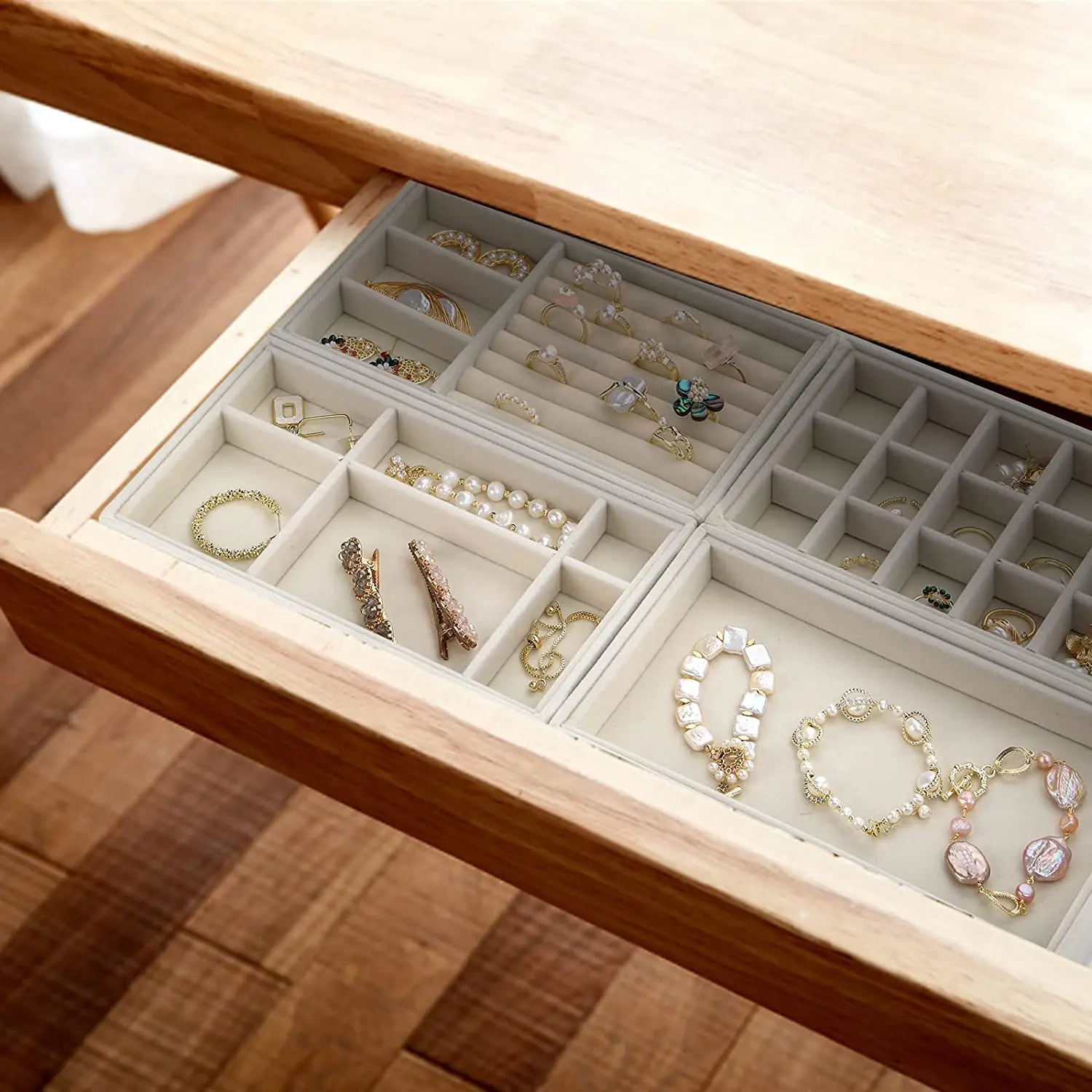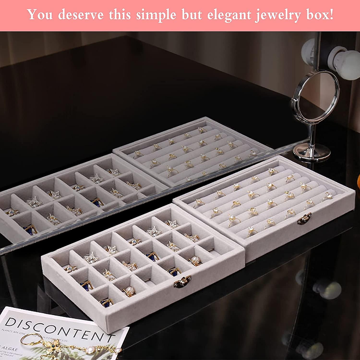 Plateaux Papten Plateau à Bijoux Empilable En Lin - Tiroir De Rangement Pour Bijoux - Plateau à Bijoux Pour 12 Montres (beige Rangement Bijoux Nsmykhg Lot de 8 plateaux de rangement de bijoux empilables en velours Elsjoy Lot de 3 plateaux à bijoux en velours epilables, plateau de... Vous pouvez combiner les tiroirs à bijoux selon vos envies ; vous Plateaux Rangement Bijoux pouvez les ranger dans un tiroir ou sur une commode. Polyvalent : Plateaux À Bijoux Empilables mesure 21,1 x 12,7 x 2,5 cm (L x l x H), ce Plateaux À Bijoux Empilables idéal pour ranger et exposer vos bijoux à la maison ou au bureau. Ajustez la taille et le nombre de compartiments en ajoutant ou en supprimant des séparateurs pour répondre à vos besoins. Plateaux Rangement Bijoux empilable : Ce Plateaux Rangement Bijoux est de taille idéale pour s'intégrer dans presque tous les tiroirs, commodes ou étagères, permettant de les empiler en toute sécurité et de gagner de la place. Plateaux Rangement Bijoux : Ce Plateaux Bijoux comprend 8 ensembles : un grand écrin à bagues, un grand plateau à deux compartiments, un grand plateau à 15 compartiments, un grand plateau à 6 compartiments, un grand plateau à 6 compartiments, un grand plateau à 9+1 compartiments, un grand plateau à 6+1 compartiments et un grand plateau à bracelets. Chaque Plateaux Bijoux mesure environ 21 x 12,5 x 2,5 cm. Idéal pour Plateaux À Bijoux Empilables : Ces Plateaux À Bijoux Empilables sont une excellente idée cadeau pour la Saint-Valentin, un anniversaire, la fête des Mères, Noël, un mariage, des fiançailles, un anniversaire de mariage, etc. SONGICS Boîte à Bijoux, Coffre Bijoux, Rangeent beauté 4 Niveaux...