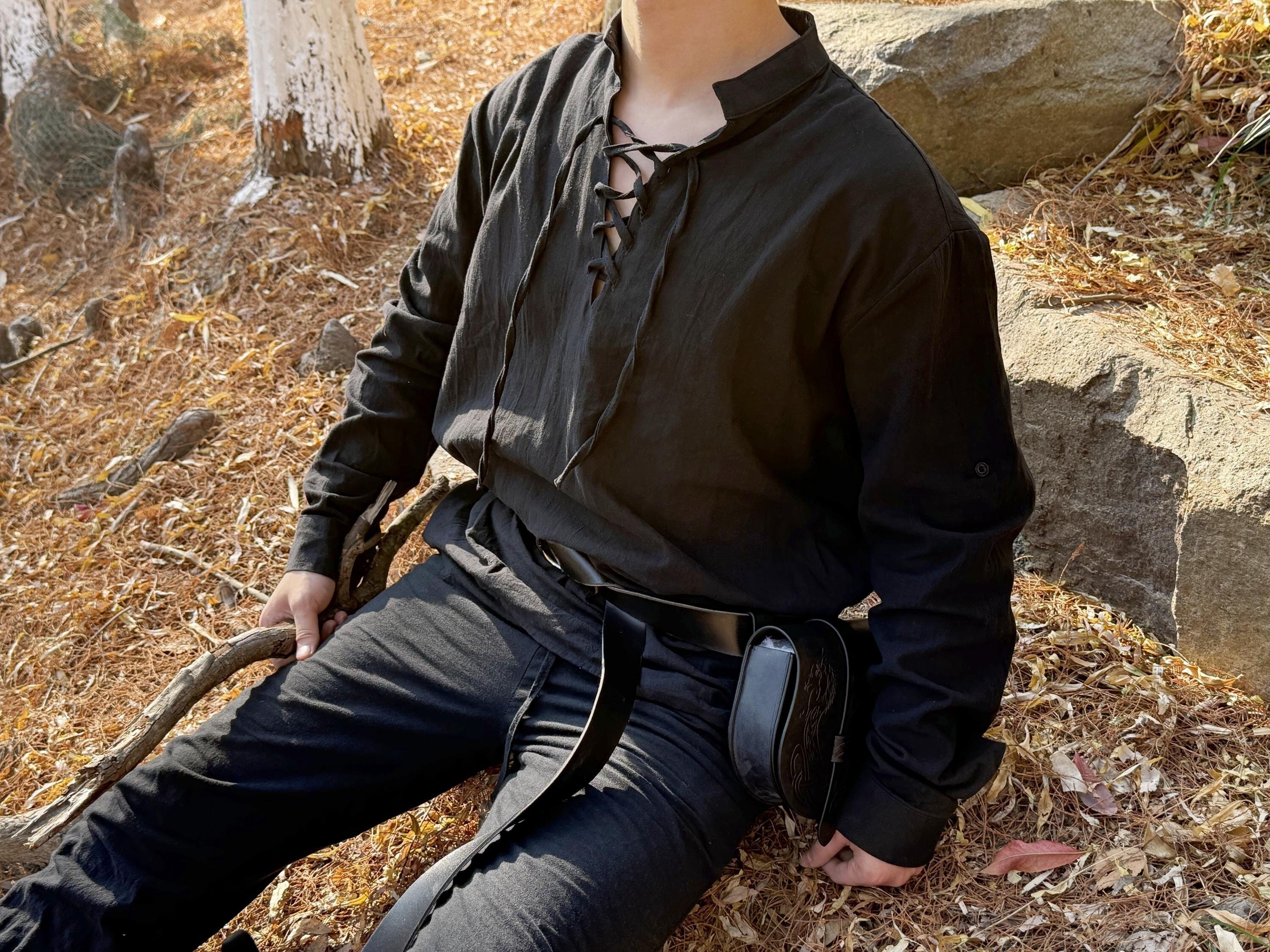 Chemise médiévale fermée modèle Rurik, noire ⚔️ Tienda Medieval Karl Kani - Top manches longues rétro à lacets et imprimé - Noir et... Vêtement Renaissance Décontracté Chemise Médiévale Originale Chemise Médiévale Homme En Lin - Tunique Sans Col Avec Lacets - Style Viking Décontracté Tunique Medievale Homme Chemise Décontractée Style Rétro Apportez l'élégance intemporelle du Moyen Âge dans votre garde-robe - Explorez notre collection et trouvez le parfait surcoat, tunique, tabard ou chemise pour compléter votre look Forme : coupe décontractée, Fonction : polyvalent, Utilisation : loisirs quotidiens Caractéristiques : bonne aération