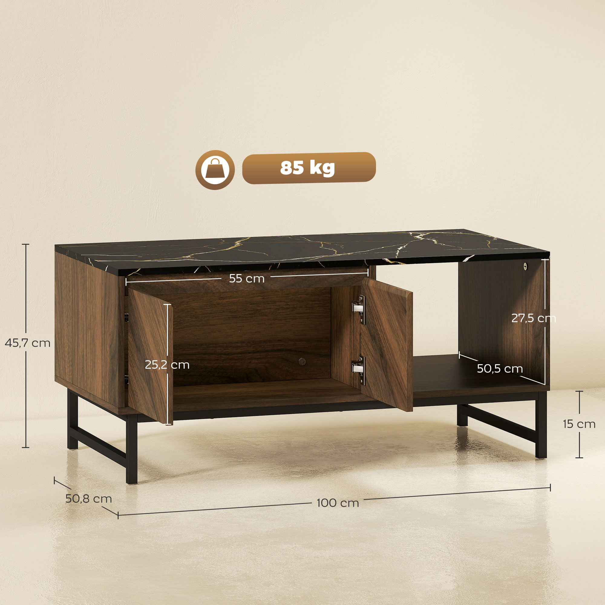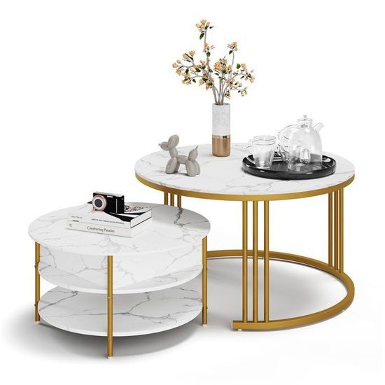 Son espace de 15 cm au-dessus du sol facilite le passage des robots aspirateurs, simplifiant l'entretien quotidien. Table Basse Moderne En Métal Noir Avec Plateau Effet Marbré, 2 Niveaux Table Basse Ronde Avec Rangement Transformez votre salon avec la table basse HOMCOM. Transformez votre salon avec la table basse HOMCOM. Elle allie rangement avec ses étagères et placard, et élégance avec son plateau effet marbre noir et finition noyer. Robuste, elle supporte jusqu'à 85 kg. Son design moderne et luxueux apporte une ambiance chaleureuse, parfaite pour un intérieur harmonieux et organisé. La table basse avec rangement ouvert et fermé garde votre salon... Cette table de salon robuste supporte jusqu'à 85 kg, assurant une grande durabilité RANGEMENT POLYVALENT : Combinant intelligemment deux étagères ouvertes et un compartiment fermé, cette table basse offre un espace de rangement modulable pour un salon toujours impeccable, parfait pour ranger vos indispensables ou pour mettre en valeur vos objets décoratifs. HOMCOM Table Basse Ronde Effet béton ciré en Bois et métal - 80 x 45... La table basse avec rangement ouvert et fermé garde votre salon organisé Robuste, elle supporte jusqu'à 85 kg. DESIGN ÉLÉGANT : Avec son plateau effet marbre noir et sa finition en noyer chaleureux, cette table basse apporte une touche de modernité à votre salon, rehaussant le style de votre intérieur tout en créant une atmosphère de luxe. HOMCOM Table Basse avec Plateau relevable Table de Salon avec 2 Grands Son design moderne et luxueux apporte une ambiance chaleureuse, parfaite pour un intérieur harmonieux et organisé. CONSTRUCTION SOLIDE : Réalisée avec soin en panneaux de particules et MDF, renforcée par des pieds en acier solide, cette table de salon est conçue pour être stable et robuste, supportant jusqu'à 85 kg, idéale pour une utilisation prolongée.