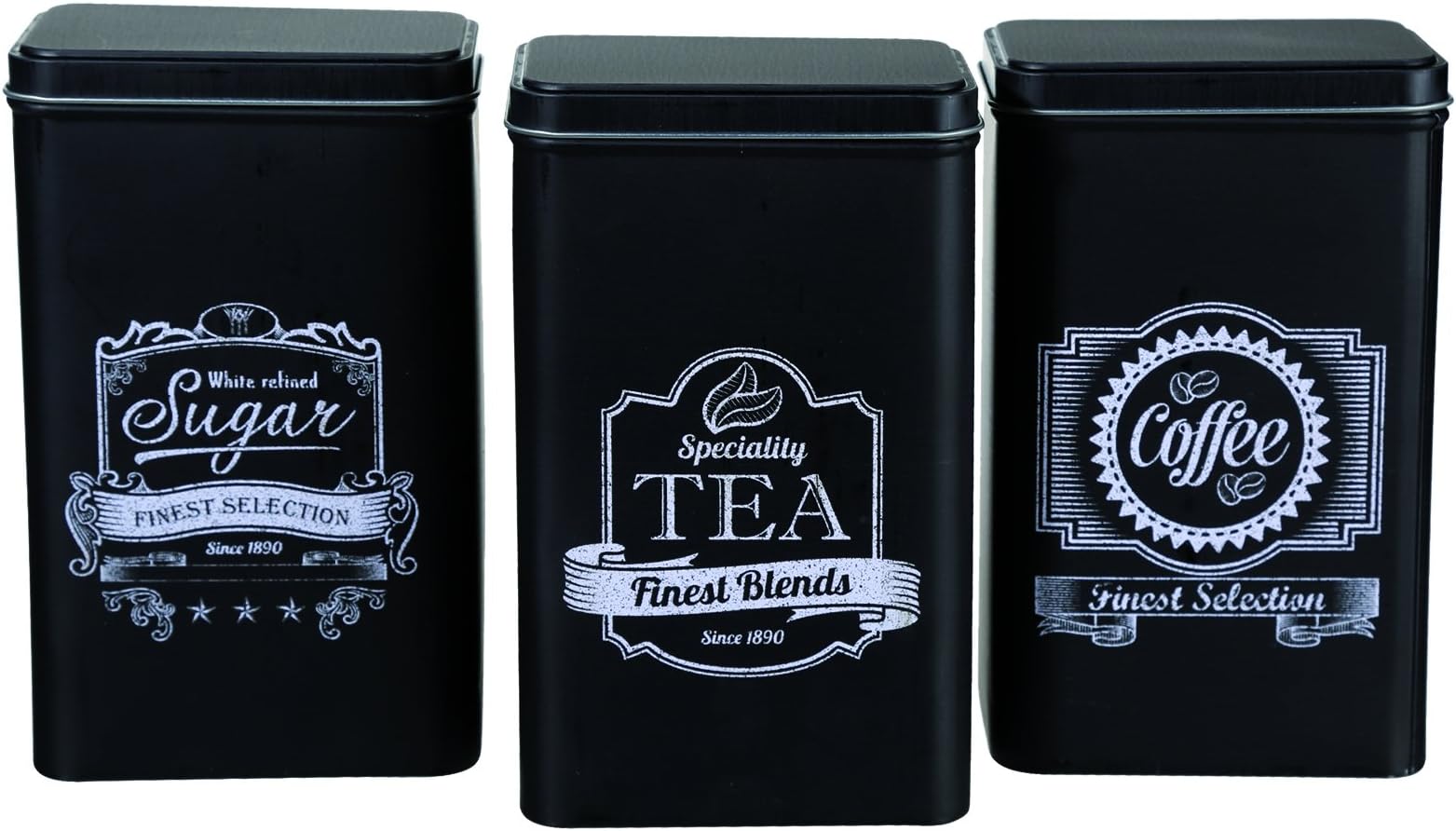 Les boîtes sont fabriquées en matériau robuste de qualité supérieure, résistant à la rouille et durable. Lot de 3 boîtes à thé, café et sucre en métal résistant à l'humidité, boîtes à thé vintage en fonte avec couvercle pour aliments secs Le design élégant et rustique des boîtes apporte une touche sophistiquée à votre maison et s'accorde parfaitement avec différents styles de décoration, en particulier les intérieurs vintage et traditionnels. Rangement Casserole Lot De 3 Boîtes De Rangement En Métal Pour Café, Thé Et Sucre Couvercles Bambou 15x11x11 Cm Noir Naturel Relaxdays 98922501 Lot 3 Bocaux Hermétiques Avec Plateau Le plateau assorti de 30 x 9,9 x 2,5 cm offre suffisamment d'espace pour placer les boîtes de conserve de manière pratique et bien visible. Matériau robuste de qualité supérieure : les boîtes sont fabriquées en métal de haute qualité, résistant à la rouille et durable. Boîte à café, pot de conservation pour grains de café ou café en poudre... L'ensemble est un cadeau pratique et chic pour les amis et la famille qui apprécient l'organisation de la cuisine soignée et élégante. Bouchon hermétique : les boîtes de conservation disposent d'un bouchon hermétique qui garantit la fraîcheur des grains de café, du thé et du sucre. Colorant Alimentaire Hydrosoluble en Poudre pour Sucre Tiré - Effet... Le plateau assorti de 30 x 9,9 x 2,5 cm facilite la disposition et la visibilité des boîtes dans votre cuisine. Ce matériau garantit que les boîtes restent stables et fonctionnelles même après une longue utilisation. Le couvercle se ferme fermement et empêche l'air ou l'humidité de pénétrer dans le récipient pour garantir une plus longue durée de conservation des aliments. Ce lot de 3 boîtes de rangement décoratives en métal est idéal pour garder votre café, thé et sucre frais et hermétiques. Vous pouvez y stocker du café, du thé et du sucre, mais aussi d'autres aliments tels que des épices, des noix ou des bols à céréales.