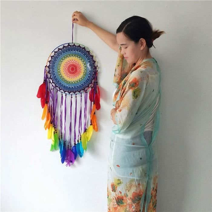 【Cadeau parfait】: les attrape-rêves doux ne sont pas seulement le meilleur cadeau pour la petite amie, lanniversaire de mariage de la femme, lanniversaire de lenfant, lanniversaire de la mère ou la fête des mères, la fête des pères, le jour de Thanksgiving, la Saint-Valentin et Noël, mais aussi le cadeau de maison intéressant de haute qualité pour les anniversaire Décoration Murale Bohème Tissée Main Acheter Capteur De Rêve Mural En Macramé - Style Bohème GÉANT Attrape-rêves Décoration Idéal pour la crèche, la chambre d'enfant, la chambre à coucher et ainsi de suite. Adeptes du style bohème et du macramé, ce DIY est fait pour vous ! Découvrez vite comment réaliser un superbe « dreamcatcher » (capteur de rêves ou attrape-rêves en bon français !), cet objet artisanal issu de la culture amérindienne 【Lovely Dream Catcher】: avec cette tenture murale en macramé qui ajoute instantanément une ambiance bohème à votre pièce et réchauffe un espace. Il est idéal pour une chambre, un salon, un espace de travail ou nimporte où où vous souhaitez apporter de la texture et de lintérêt à vos murs. Tapisserie Murale en Macramé à Plumes Style Bohème Chic Faite à la Main... 【Attrapeur de rêves】: Boho dream catcher est taditionnellement utilisé comme talismans, filtré les cauchemars pour protéger les personnes endormies, leur apporte un élémen paisible. Tissés à la main Un magnifique attrape-rêves fait à la main, tricoté à la main par des travailleurs expérimentés, peut être utilisé pour la décoration de la chambre, la décoration de mariage. Unique conçue et fabriquée à la main, cette pièce unique sera sûre dêtre le centre dattention où que vous choisissiez de laccrocher. Capteur de Rêves en macramé - Soins Luxart Conception simple et spéciale La technologie de rêve de tissage décoratif, une veilleuse chaude, un éclairage doux rend votre pièce plus chaude. Le suspendre près de la fenêtre fait un bon rêve la nuit.