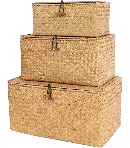 OLegei Panier de rangeent en osier panier avec couvercle panier pour étagère boîte de rangeent... Avec le couvercle, il peut vous aider résister la poussière. C'est un cadeau créatif pour votre famille et vos amis, adapté à la décoration de commode, de mariage, de fête d'anniversaire ., ., . Panier Avec Couvercle 24x24x12 Cm Petit Panier De Rangement En Osier Tissé Pour Le Linge Avec Couvercle-Panier De Rangement En Boîte Rangement Couvercle Osier Ce panier d’étagère a un renfort en métal à l’intérieur comme support, vous pouvez le transporter facilement. Ce panier de rangement est en osier tissé, des matériaux de haute qualité assurent la longue durée de vie du panier, solide et élégant,le tressage est réalisé avec finesse, facile à nettoyer et il suffit de l'essuyer avec une serviette sèche pour le nettoyer Ce panier de rangement est en osier tissé, des matériaux de haute qualité assurent la longue durée de vie du panier, solide et élégant,le tressage est réalisé avec finesse, facile à nettoyer et il suffit de l'essuyer avec une serviette sèche pour le nettoyer. Panier Osier Avec Couvercle BEIJIALY Bacs De Rangement En Osier Tissu00e9 Plat, Panier De Rangement En Rotin, Panier De Rangement En Paille D'algues Fait U00e0 La Main, Paniers Boite Osier Avec Couvercle