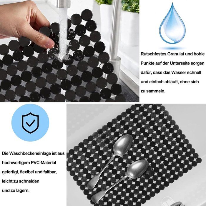 De couleur noir, il s'intègre parfaitement à différents styles de cuisine. 2 tapis évier plastique 40×30 cm gris, égouttoir/protection 【Conception de drainage rapide】: La conception unique en forme d'œuf d'oie creux du protecteur d'évier est non seulement belle, mais favorise également le drainage rapide de l'eau, évite les problèmes d'accumulation d'eau, aide la vaisselle à sécher plus rapidement et maintient la cuisine bien rangée Tapis Protection évier Cuisine 40x30cm KineticKraft Lot De 2 Tapis D'évier, En PVC, 40 X 30 Cm, Tapis D'évier, Protection D'évier, Tapis De Protection, Tapis D'évier De Cuisine, Découpable Pour Vaisselle, Verrerie, Légumes Tapis égouttoir Vaisselle Pvc Matériaux de haute qualité Le tapis de protection d'évier est fabriqué avec soin en PVC de haute qualité, durable, antidérapant et durable. Protégez votre évier de cuisine Les tapis d'évier à drainage rapide peuvent protéger la vaisselle fragile des rayures tout en protégeant votre évier des dommages., Taille : 40 x 30 cm. Orbz protection évier tapis évier en plastique egouttoir a vaisselle à... pour répondre à divers besoins de cuisine Large gamme d'utilisations Le tapis d'évier en plastique convient à la protection des éviers de cuisine, des éviers en acier inoxydable, des éviers de salle de bain et des éviers en porcelaine ; il peut également être utilisé comme tapis de drainage pour ranger les bols et les casseroles. BOUCHON EVIER,Green--Tapis'évier créatif en plastique polyvalent... Convient aux petits éviers de cuisine, aux éviers doubles. Facile à nettoyer Les tapis d'évier pour cuisine sont faciles à nettoyer et réutilisables, il suffit de les tremper dans de l'eau savonneuse, de les frotter avec une éponge, de les rincer et de les suspendre pour les sécher. 【2 tapis de protection pour évier】 : le paquet contient 2 tapis de protection noirs pour évier, mesurant 40 x 30 cm, qui peuvent être coupés librement selon la taille et la forme de divers éviers pour répondre à différents besoins KYYGKY tapis de séchage vaisselle ---- Le moyen le plus simple de protéger votre évier des rayures et des dommages 【Protégez votre évier des rayures】: Le tapis de protection d'évier noir empêche non seulement l'évier des rayures et des dommages, mais fournit également un bon tampon pour la verrerie fragile et les éviers en acier inoxydable ou en céramique, prolongeant leur durée de vie