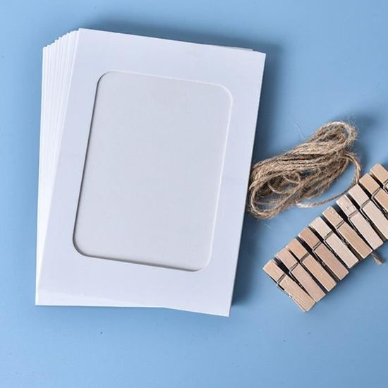 BLANCHE - 7 pouces - Cadres Photo En Carton Kraft, 10 Pièces, Bricolage ✨ Une Décoration Polyvalente et Personnelle: Donnez vie à vos murs en exposant vos plus beaux souvenirs : photos de famille, portraits de bébé, cartes postales, tickets de concert ou petites illustrations. Guirlande Anniversaire EasyLife Cadres Photo En Papier Kraft, Avec 30 Cadres Photo, 30 Pinces Guirlande Photo Déco Murale DIY 💚 Matériau & Design Bohème: Fabriqués en papier kraft résistant et recyclable, ces cadres légers arborent un look rétro et délicat. 30 Cadres Photo en Carton, Cadres de Photos en Papier Kraft, Ensemble... Cadre avec des tapis de papier Kraft, des timbres et de l'encre PNG... 🖼️ Format Adapté pour une Mise en Valeur Optimale: Dimensions externes : 9,5 x 9 cm. Idéal pour le salon, la chambre, la chambre d'enfant ou le bureau. Convient parfaitement pour les photos 10x15 cm recadrées (9x9,5 cm) ou pour les photos format Mini, pour mettre vos souvenirs en valeur. Fixez les cordes, placez vos photos et accrochez-les avec les pinces. Cette guirlande photo crée une ambiance chaleureuse et personnelle, et sera un excellent sujet de conversation parmi vos invités. 📦 Kit Complet DIY & Installation Facile: Le set comprend 30 cadres (9,5x9 cm), 30 pinces en bois et 3 cordes de jute (2 mètres chacune).