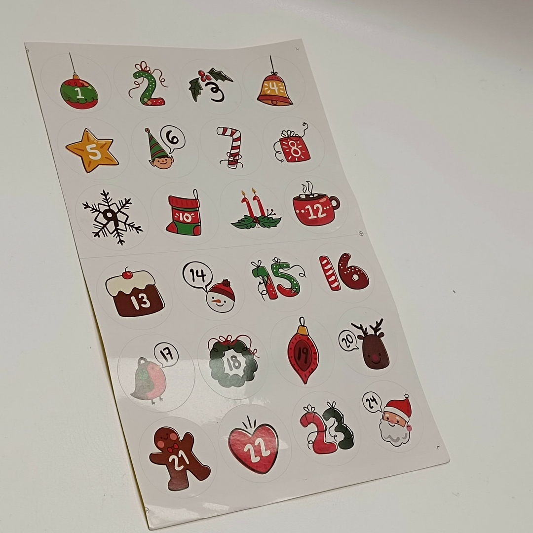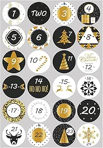 Destiné à des fins décoratives. Calendrier de l'Avent DIY : parfait pour créer et décorer votre propre calendrier de l'Avent. Deux styles, deux feuilles : contient 2 feuilles (20 × 31 cm), une avec des mots allemands (une à vingt-quatre) et une avec des chiffres arabes (1 à 24). Veuillez vous assurer que les autocollants sont correctement et en toute sécurité sur le calendrier ou les sacs en papier pour éviter qu'ils ne se déchirent ou ne s'avalent accidentellement. Calendrier de l'avent autocollants - France Il ne s'agit pas d'un jouet. À utiliser uniquement sous la surveillance d'un adulte. Calendrier de l'Avent de Noël avec des chiffres pour compter les jours... Design festif : les couleurs et motifs classiques de Noël apportent chaleur et charme à vos cadeaux de l'Avent et décorations faits maison. Les petites pièces peuvent être avalées et présenter un risque d'étouffement. Numérotez chaque cadeau ou surprise de 1 à 24 pour un compte à rebours joyeux de Noël. Décoration Calendrier Avent Maison Autocollants Calendrier De L'Avent De Noël En Papier Kraft, Étiquette Autocollante Pour Emballage De Cadeaux De Ix, Bricolage, Décoration Pour La Maison, 24 Jours Stickers Ronds Décoration Calendrier DIY Avertissement De Sécurité ne conviennent pas aux enfants de moins de 3 ans. Les petites pièces peuvent être avalées et présenter un risque d'étouffement. À utiliser uniquement sous la surveillance d'un adulte. Veuillez vous assurer que les autocollants sont correctement et en toute sécurité sur le calendrier ou les sacs en papier pour éviter qu'ils ne se déchirent ou ne s'avalent... Détails du sticker : chaque autocollant rond mesure 4,5 cm - magnifiquement conçu pour tous les jours jusqu'à la veille de Noël.