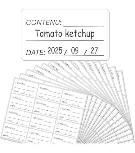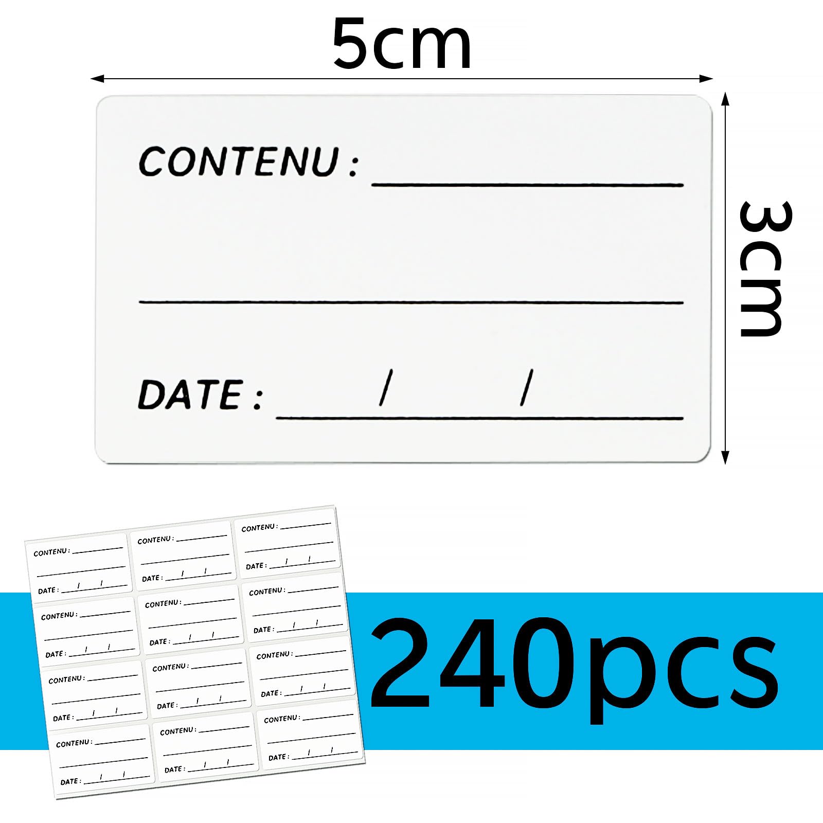 Spécifications du produitDimensions : Chaque étiquette mesure environ 5 cm x 3 cmQuantité : 300 autocollants par paquet, 12 étiquettes par feuille, soit un total de 25 feuilles., Facile à décoller. Ce produit est conçu pour ne laisser aucun résidu adhésif après retrait. Couleur : Étiquette blanche avec texte noirII. Tenue optimale même à basse température, ne laissant aucun résidu adhésif au décollement. 【Étiquettes de Conservation Alimentaire】contient 300 étiquettes autocollantes, réparties en 25 feuilles de 12 étiquettes chacune. Conserver dans un endroit frais et sec, à l'abri de la lumière directe du soleil et des températures élevées. étiquettes Congélation Professionnelles Étiquettes Autocollantes En Papier Pour Conservation Des Aliments, 500 Frigo Congelateur Fournisseur d'étiquettes professionnelles personnalisées - Agis Étiquette Retrait : Pour remettre ou retirer l’étiquette, décollez-la lentement et uniformément vers le haut, en partant d’un coin., III. Matériau : Papier couché de haute qualité avec adhésif thermofusible spécial. Inscription facile au stylo ou au marqueur, sans effacement. Durée de vie des aliments : secrets d’une congélation réussie – Au Menu... Application : Décollez l’étiquette de son support. 【Polyvalent et Pratique】Idéal pour les bocaux, les Tupperware, les sacs et le papier cadeau. Format pratique (5 x 3 cm), facile à ranger et à utiliser. Présentation du produit 300pcs Étiquettes de Congélation,5x3cm Étiquette Autocollant Congelable,Auto-adhésif Etiquette Bocaux,Amovible,Étiquettes 300 PIÈCES ÉTIQUETTES AUTOCOLLANTESÉtiquettes de Congélation comprend 25 feuilles, avec 12 étiquettes par feuille, soit un total de 300 autocollants. La taille est de 5x3 cm. Idéales pour trier, identifier et embellir, sans effort à... 【Imperméable et Bonne Durabilité】Matériau de haute qualité résistant à l'humidité et aux basses températures. À utiliser à la maison, au restaurant ou pour organiser votre garde-manger. InstructionsÉcriture : Utilisez un stylo à bille ordinaire ou un marqueur permanent pour écrire le nom et la date de l’aliment.