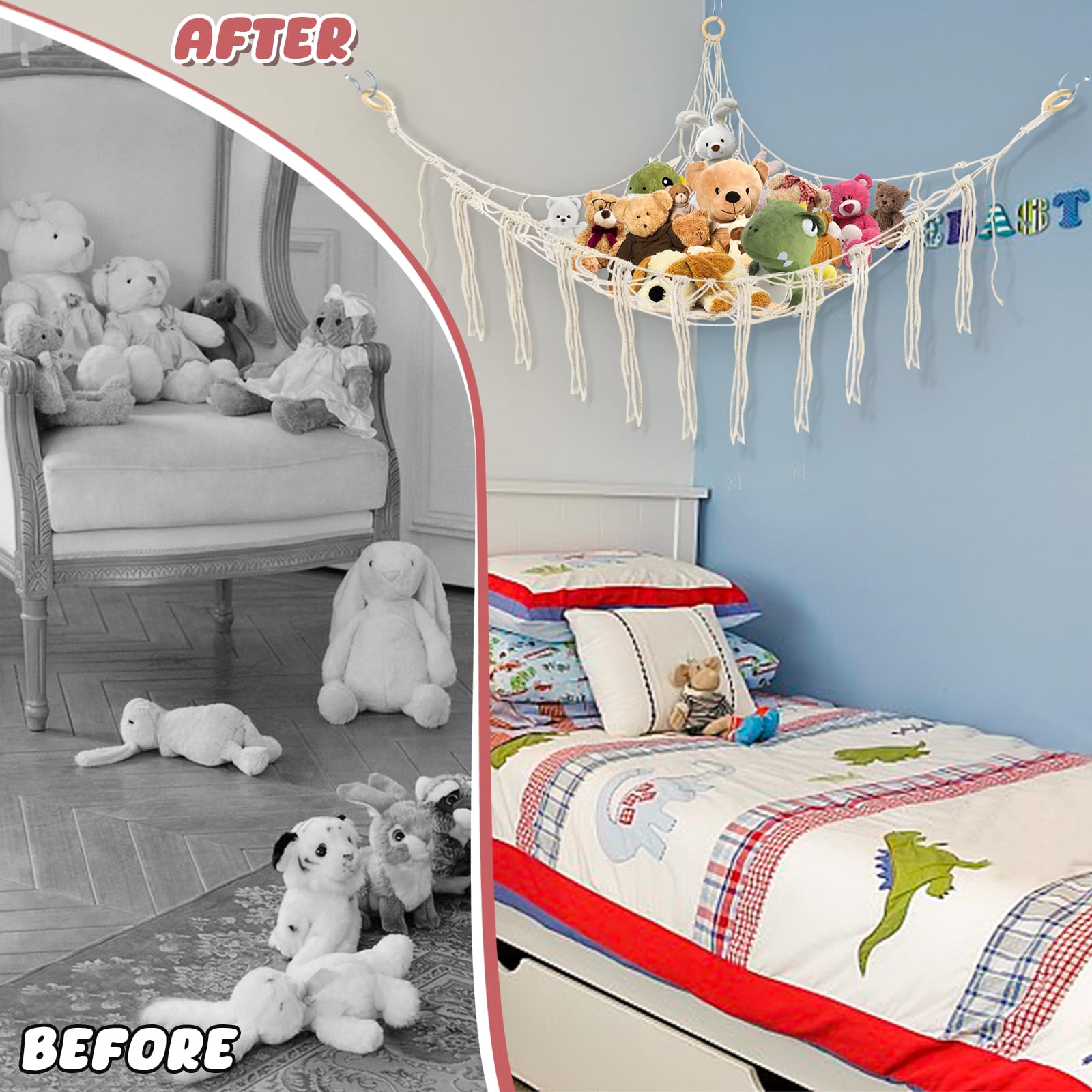 Jouet hamac pour peluche jouets organisateur Fixation inclus (Neu und 【Transformez Le Désordre En Décoration】La forme de ce hamac jouet est triangulaire, ce qui permet d'utiliser pleinement l'espace d'angle dans la pièce. Hamac Peluche Pour Jouet Hamac De Rangement Et Chaîne De Jouets En Peluche Avec Glands Et Lumières, Hamac De Jouet Rangement Coin Chambre Dimensions : 140 x 102 x 102 cm. Désencombrez votre surface au sol sans cacher les amis en peluche de votre enfant et en les gardant à portée de main. Une alternative parfaite aux poufs et coffres à jouets traditionnels Jouet hamac pour peluche jouets organisateur Fixation inclus (Neu und... 【Le Meilleur Cadeau】Ce filet pour animaux en peluche ou hamac jumbo est une façon amusante d'afficher des animaux en peluche, il peut également développer les compétences et la responsabilité de l'organisation des enfants. Désencombrez votre surface au sol sans cacher les amis en peluche de votre enfant et en les gardant à portée de main. Si vous cherchez les meilleurs cadeaux pour garçons et filles, ne cherchez pas plus loin que ce filet pour animaux en peluche, les enfants vont adorer! Caractéristiques : Couleur : blanc. Prend également en charge les crochets adhésifs (non inclus), mais la capacité de poids du hamac diminuera. Description : 1., Filet blanc avec bordure., 2., Parfait pour les enfants et les adolescents., 3., Assez durable pour stocker des jouets et du matériel de sport., 4., Le hamac à jouets s'adapte à la plupart des coins - Veuillez noter que le design est mieux adapté pour les coins utilisés dans les chambres et salles de jeux.