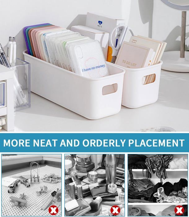 Organisation améliorée : vos espaces de vie et de travail restent propres et bien structurés afin que vous puissiez profiter d'un style de vie efficace et organisé. Organisation Maison Rangement Empilable Panier De Rangement En Plastique Avec Trous_2 - Solutions De Vente En Gros Organiseur Empilable Maison Bureau Caractéristiques : * Solution de rangement polyvalente : cette boîte de rangement polyvalente est conçue pour garder votre maison et votre espace de travail organisés, ce qui la rend parfaite pour ranger tout, des fournitures d'art aux cosmétiques et essentiels de bureau. Boîte De Rangement Pliable Empilable Boîte De Rangement En Plastique... Dimensions : 25 x 15,5 x 11 cm. Couleur : blanc, bleu, rose, jaune., Compatibilité : rangement. Petits Prix Et Livraison Gratuite Dès 25 Euros D'achat Sur Les Produits Asking. Commandez Asking Boîte De Rangement En Plastique De 8 L Avec Poignée... Caractéristiques : Nom du produit : boîte de rangement de bureau empilable portable., Matériau : plastique. * Empilable et portable : le design empilable vous permet d'économiser de l'espace tandis que la poignée pratique permet aux adultes et aux enfants de transporter facilement le panier chaque fois que nécessaire. Ensemble de bacs de rangement empilables : cette boîte de rangement portable offre une utilisation polyvalente pour organiser tout, des cosmétiques aux fournitures de bureau, parfaite pour n'importe quelle pièce de votre maison ou espace de travail. HURRISE bacs de rangement empilables Panier de rangement empilable * Vie organisée : gardez vos espaces de vie et de travail propres et structurés, en veillant à ce que tout ait sa place, afin que vous puissiez profiter d'un style de vie plus efficace et sans tracas. Compartiments réglables : avec des sections personnalisables avec un séparateur amovible, vous pouvez la disposition en fonction de vos besoins et préférences de stockage.