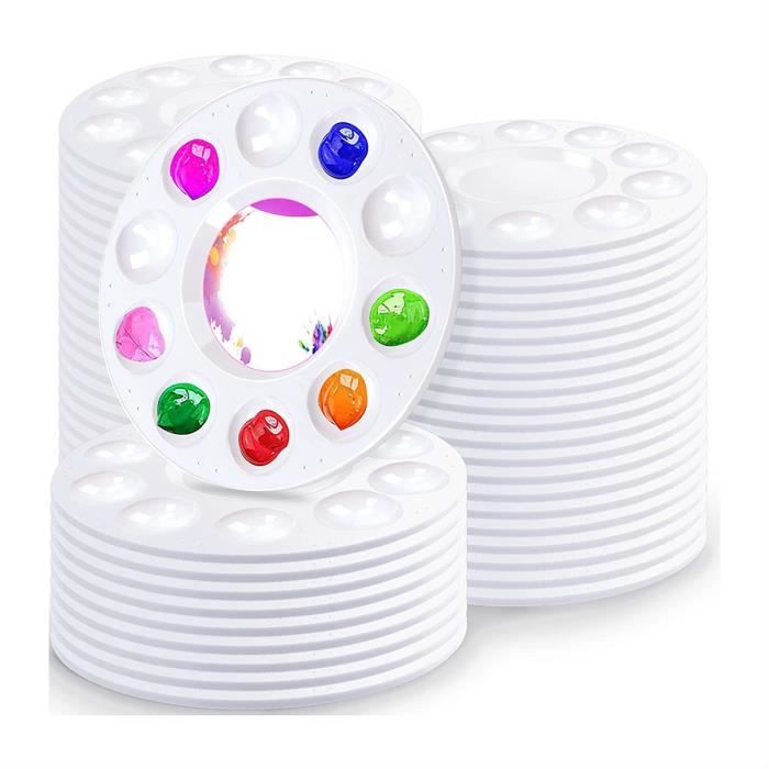 Artino Palette plastique ronde blanche 11 compartiments Palette Aquarelle Acrylique Enfant Lot De 4 Palettes De Peinture Rondes En Plastique Blanc Avec 11 Puits, 17 Cm Pour Peinture à L'huile, Aquarelle Palette Plastique Ronde 10 Compartiments 17 Cm Chaque palette a 10 puits individuels un réservoir central - parfait pour garder vos couleurs séparées ou pour les mélanges. La surface lisse est facile à... Faciles à nettoyer : Il suffit de rincer les palettes à l'eau pour qu'il ne reste aucun résidu de peinture et qu'elles restent comme neuves. pour l aquarelle en plein air palette hermetique compacte en plastique... RÉSISTANT ET DURABLE : La construction en plastique robuste résiste à une utilisation fréquente et garantit un plaisir de peindre durable. UTILISATIONS POLYVALENTES : Idéales pour les cours d'art, les ateliers, les fêtes et les projets de bricolage, idéales pour les artistes et les bricoleurs.