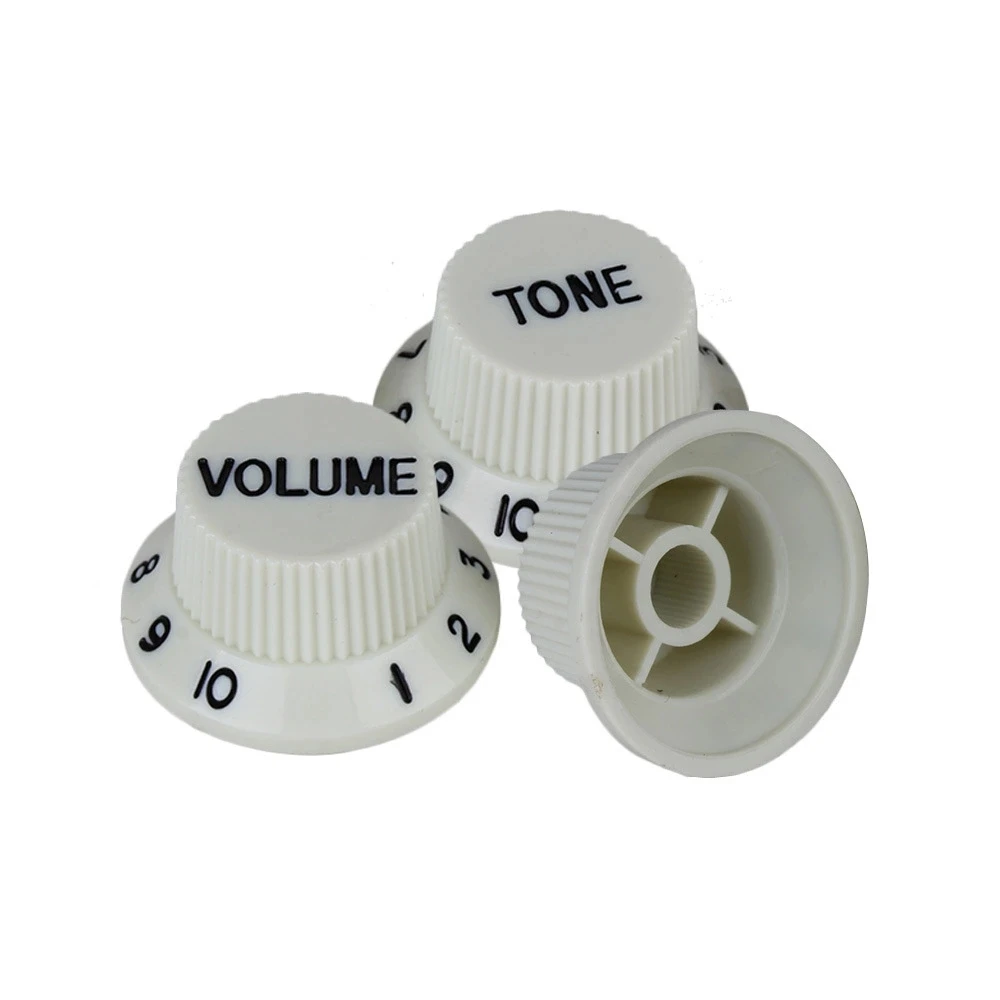 Lot 3 Boutons ST Style Kit De Boutons En Plastique Noir Durable, 10 Pièces, Pour Pièces De Boutons Plastique Guitare électrique Accessoires Guitare Fender Boutons Potentiomètres Fender Stratocaster Blanc - Lot De 3 Pour Volume Et Tone Boutons Potar Guitare Boutons de commande pour amplificateur effet guitare, 30 en France... Le bas du bouton : environ 25,5 mm de diamètre., Hauteur : environ 13 mm. Le trou central est d'environ 6 mm de diamètre. Tient confortablement dans votre main, facile à installer Description du produit : 1., Tient confortablement dans votre main, facile à installer., 2., Chaque lot comprend 2 boutons de tonalité et 1 bouton de volume., 3., Il s'adapte à tout potentiomètre avec une tige cannelée de 6 mm., 4., Simple et rapide à installer, ces boutons sont conçus pour les guitares électriques., 5., Excellent remplacement pour guitare de style ST. Chaque lot comprend 2 boutons de tonalité et 1 bouton de volume Simple et rapide à installer, ces boutons sont conçus pour les guitares électriques Excellent pour guitare de style ST À propos de cet article 1 bouton de contrôle pour guitare électrique 2 tons Fabriqué en palissandre, avec anneau en caoutchouc, antidérapant. Polissage à la main, processus de gravure, compatible avec la plupart des guitares électriques Diamètre du trou d'installation intérieur