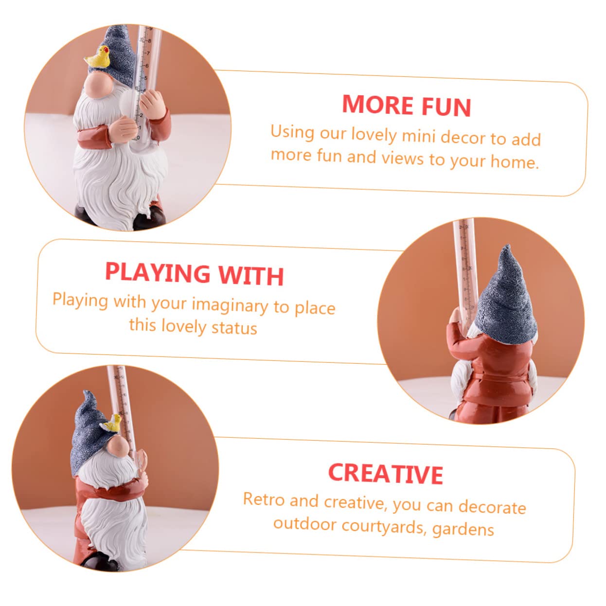 Caractéristiques : Matériau : résine SHRIGM Pluviomètre - Jauge de Mesure de Pluie de pelouse Jauge de Pluie... Cette figurine de nain de jardin affiche vivement la vitalité et l'harmonie de la nature, ajoutant une touche de couleur à votre jardin. Ils ajoutent un élément unique d'humour et de plaisir à vos espaces de vie intérieurs et extérieurs. Nu Flame Tuzsocr Gnome En Résine, Jauge De Pluie Décorative Extérieure En outre, c'est une excellente décoration de jardin et de merveilleux cadeaux pour les enfants qui aiment l'observation naturelle. Description du produit Let It Rain : Pluie, pluie, ne partez pas Cette statue de nain joyeux égayera votre jardin même les jours les plus sombres des pluies tout en vous aidant à garder une trace des précipitations avec sa jauge afin que vous puissiez planifier le bon arrosage pour vos plantes., Par temps extrême. Contenu du produit : 1 x jauge de pluie en forme de gnome - [Matériaux durables] : ce pluviomètre de Noël est fabriqué en plastique durable et en résine imperméable, plus durable que le verre, conçu pour résister aux conditions météorologiques difficiles, éviter les fissures, l'écaillage et la décoloration. - [Installation facile] : la jauge de mesure de pluie est rapide à installer, il suffit de placer le pluviomètre dans la position de votre choix, puis vous êtes prêt à recueillir l'eau de pluie, il est facile à enlever et à remplacer, et peut être adopté plusieurs fois Des éléments de design inhabituels raviront vos amis et invités. Chaque pièce est très détaillée et imprimée à la main, doit être un cadeau parfait pour le printemps, Noël, Thanksgiving, la fête des mères, un anniversaire pour les amis et la famille qui aiment l'art du jardin., Remarque : 1., La couleur peut varier légèrement en raison des différents affichages de l'écran., 2., Les mesures étant prises à la main, les tailles indiquées peuvent varier légèrement. Inspiré par le nain dans la forêt, sa belle apparence et son design unique font de ce nain de pluie un gnome de pluie qui se démarque parmi vos décorations de jardin. Ce pluviomètre pour cour est un charmant gnome, un joli... Il vous fournit une date de mesure précise pour décider si vous devez éviter d'inonder votre équipement. - [Pluviomètre multifonctionnel] : ce pluviomètre de jardin décoratif peut être placé sur le sol, la clôture, la terrasse ou le bâtiment pour mesurer l'eau en intérieur et en extérieur, il s'adapte également sur les porches, les terrasses, les jardins, les balcons, les rebords de fenêtre et les pots de fleurs, à la fois pour la décoration et pour surveiller les niveaux d'eau Pluviomètre Nain de Jardin- Joli Manomètre de Mesure de Pluie