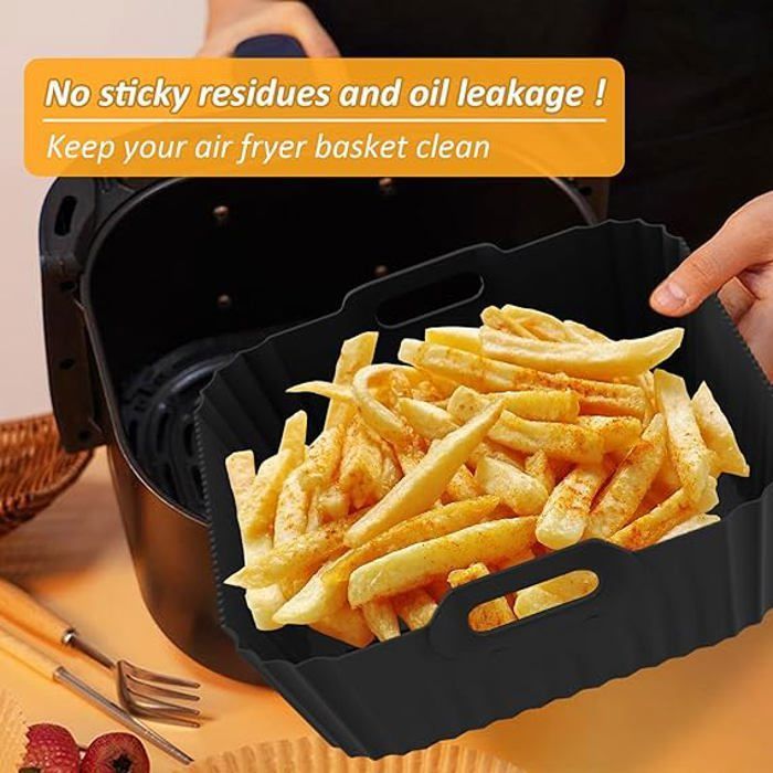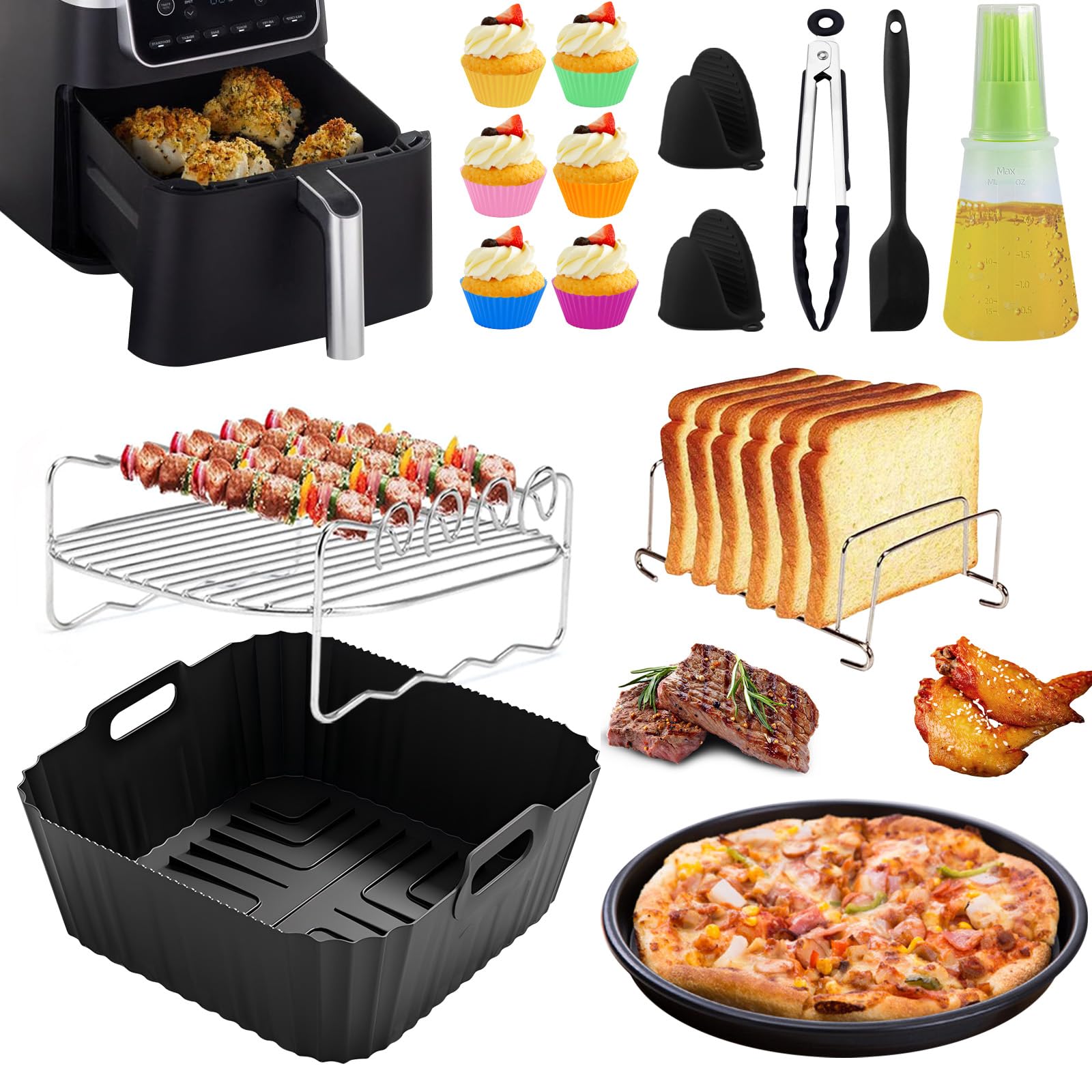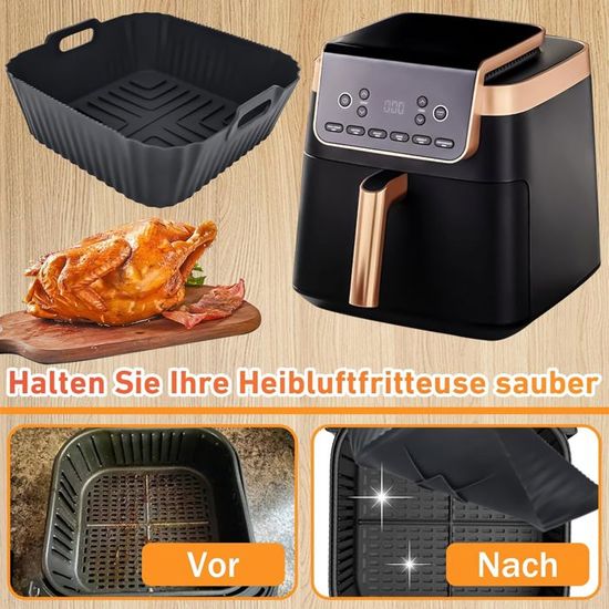 viriech Silikonform Heißluftfritteuse Zubehör, 8-teiliges Wiederverwendbar Air Fryer Accessories 3 Paquet Moule Friteuse À Air Accessoire, 8 Inch Pot En Silicone Pour Friteuse À Air... Moule Pour Airfryer Ninja VIRIECH 2 Paquet Moule En Silicone Pour Air Fryer Ninja Air Fryer Max Pro 6, 2 L AF180EU, Accessoire Air Fryer, Moule Réutilisable Pour Ninja AF140 AF141 AF181, Philips 6,2L, COSORI 5,5L Insert Silicone Air Fryer Lavable Lave-vaisselle [ACCESSOIRES POUR FRITEUSE À AIR CHAUD] - Les moules en silicone pour la friteuse à air Ninja sont spécialement conçus pour le Ninja Air Fryer AF180EU (6,2 l) et le Ninja AF140EU (4,7 l). [INSERTS EN SILICONE POUR FRITEUSES À AIR CHAUD] - Savourez de délicieux repas sans vous soucier des résidus alimentaires ou des accumulations de graisse, tout en préservant l'intérieur de votre friteuse à air chaud. COMPATIBILITY]Ce moule en silicone est conçu pour la iteuse Ninja Air Max Pro 6.2L AF180EU AF181 et Philips HD9270 et compatible avec AF140EU AF141... Excellent accessoire en silicone pour la friteuse à air Ninja. Le silicone flexible permet un retrait et un nettoyage faciles – lavable à la main et au lave-vaisselle. [ACCESSOIRES MULTIFONCTIONNELS POUR FRITEUSES] - Nos moules en silicone pour le modèle Ninja AF500 ne conviennent pas seulement à votre friteuse à air, mais aussi pour une utilisation dans les micro-ondes, fours, cuiseurs vapeur ainsi que pour la cuisson et le stockage des aliments. [ACCESSOIRE RÉUTILISABLE POUR FRITEUSES À AIR CHAUD] - Les inserts en silicone pour les friteuses peuvent être facilement nettoyés à la main ou au lave-vaisselle et sont adaptés à une utilisation prolongée.
