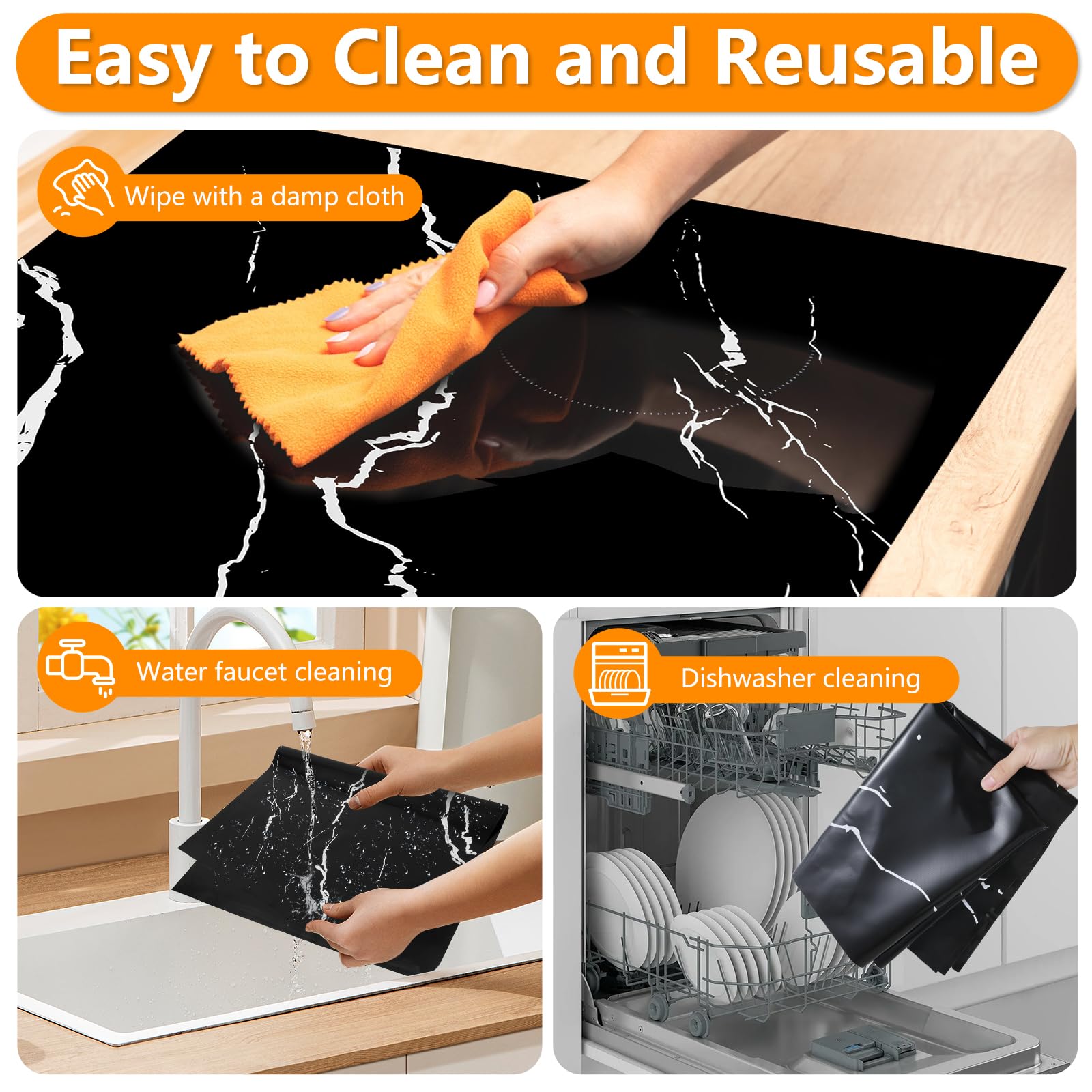 Design unique : Le tapis isolant noir classique s'intègre facilement à tout style de décoration de cuisine. Ce tapis isolant noir résiste non seulement à des températures élevées (230 °C), protège les appareils de cuisine tels que les plaques à induction et prolonge leur durée de vie, mais garantit également la sécurité de vos préparations grâce à sa surface antidérapante. Le nettoyage au lave-vaisselle est facile et pratique, et peut être réutilisé plusieurs fois. L'adaptateur induction résiste à une chaleur allant jusqu'à environ 230 degrés et ne brûle ni ne fond dans des environnements à haute température, éliminant ainsi les risques de sécurité. Avec le tapis table résistant, la protection de votre cuisine n'est plus un problème. Plaque de protection pour plaque vitrocéramique - Noir Sérigraphie Pots Utilisations : Le tapis isolant est très résistant. Matériaux de haute qualité : Ce tapis isolant est fabriqué en fibre de verre recouverte de silicone. Description du produit Nom du produit : Tapis isolant Caractéristiques du produit : Ce tapis isolant noir, en fibre de verre de haute qualité recouverte de silicone, est un allié polyvalent pour la protection de votre cuisine grâce à son excellente résistance à la chaleur, son design antidérapant et ses fonctionnalités performantes. Adaptateur Plaque Induction Grand Tapis De Protection En Silicone Pour Plaque à Induction - 52 X 78 Cm - Tapis De Protection Pour Cuisinière Sous-plaque Induction Lavable Caractéristiques du produit : Ce tapis isolant noir, en fibre de verre de haute qualité recouverte de silicone, est un allié polyvalent pour la protection de votre cuisine grâce à son excellente résistance à la chaleur, son design antidérapant et ses fonctionnalités performantes. Il protège efficacement votre plaque de cuisson des rayures... De plus, cette protection garantit une excellente efficacité de chauffage. Facile à nettoyer : Plus besoin de vous soucier du nettoyage ! Qu'il s'agisse d'un mouvement ample pour retourner la cuillère ou de placer une marmite lourde, il maintient fermement la casserole. Il convient non seulement aux plaques à induction, mais peut également être utilisé comme tapis de poêle, de micro-ondes et de plaque vitrocéramique. Tapis Cuisson Multifonction Tapis De Protection Plaque Induction Raisand - Silicone 52x78cm, Résistant 240°C Protège Plaque Induction Après lavage, elle est comme neuve et peut être réutilisée. Matériau : Fibre de verre recouverte de silicone Couleur : Noir Dimensions : 52 x 78 cm Poids : 220 g Conseils : 1., Ce produit est résistant aux hautes températures et non ignifuge. Évitez tout contact avec une flamme nue., 2., Ne chauffez pas le tapis sur une plaque à induction sans liquide, car cela pourrait le décolorer, le déformer ou produire de la fumée. Le tapis silicone cuisine vous rend la cuisine plus sûre, plus efficace et plus sereine !