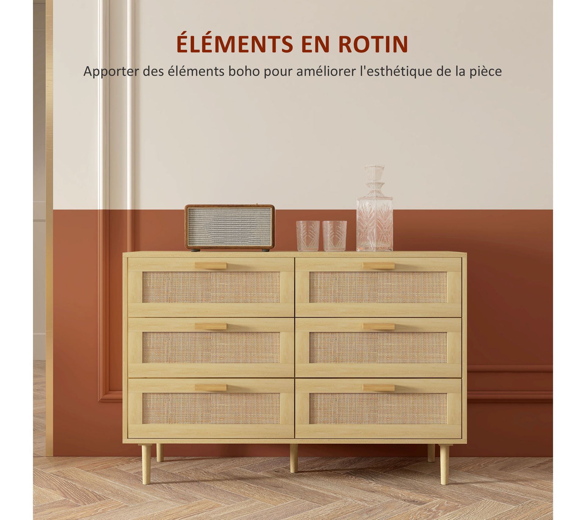 Permet à l'air d'entrer et de sortir des tiroirs de rangement. Convient comme table de chevet ou armoire de couloir et complète d'autres meubles de chambre et de salon Tiroirs Rotin Tissé Aéré Commode Rotin HOMCOM Commode En Tissu Meuble De Rangement Avec 6 Tiroirs Pliants Style Contemporain Cadre En Bois De Sapin Pour Chambre U00e0 Coucher Bureau Salon 59 X 28 X 70 Cm Commode Rotin 3 Tiroirs SucceBuy Commode en rotin naturel à 6 tiroirs - Style bohème avec... Fabriqué en MDF robuste pour un usage quotidien Apportez la beauté naturelle à votre intérieur avec cette commode Homcom. Table de chevet assortie : Homcom SKU 831-380 Finition effet bois naturel pour se mélanger bien avec les meubles plus clairs et plus foncés et compléter les panneaux en rotin. Sangles anti-basculement pour plus de sécurité Ici, nous voyons des panneaux de rotin tissés sur chaque tiroir, jouant un contraste avec l'effet bois lisse de la structure. Trois tiroirs : les tiroirs pour chambre à coucher ont beaucoup d'espace de rangement pour garantir que votre espace peut être rangé et sans encombrement. Finition avec quatre petits pieds pour élever et de longues poignées pour ouvrir et fermer facilement le tiroir. Optez pour cette commode à trois tiroirs qui vous aidera à organiser efficacement votre intérieur. Chaque tiroir peut contenir jusqu'à 14 t-shirts ou 7 pantalons, ainsi que des accessoires tels que chaussettes et ceintures Charge maximale : 40 kg, assemblage requis Structure en MDF : commode robuste et fiable pour un usage quotidien. La commode de chambre dispose de trois tiroirs et d'une table plate, ce qui permet de ranger de nombreux rangements. Commode en décor bois noir et cannage 90x39x79cm - Bohème - 3 tiroirs