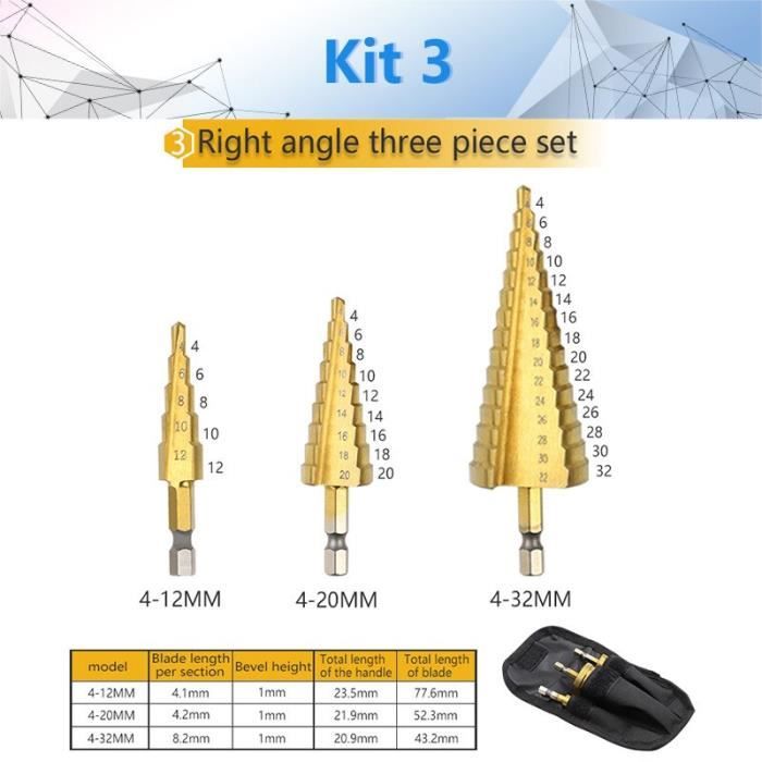 Foret Pour Métal Bois Plastique KATUR Classique Foret En Titane, Grand Foret à Cône En Titane HSS, Jeu De Fraises Pour Trous, 2 Forets étroits à Bouts Arrondis à Queue Ronde, 5-35mm Mèche Multiple Tailles KATUR Foret diamanté pour scie cloche à noyau brasé 32 mm, coupe-trou Kit 7 - Foret étagé à cône revêtu de titane en Cobalt HSS - YWEI... Foret étape en acier rapide, de belle qualité et durable. La conception à deux flûtes vous permet une coupe plus rapide et plus douce. Parfait pour les réparations à la maison et les travaux légers pour percer un trou d'eau. Caractéristiques: Titane revêtu pour réduire les frottements et la chaleur. Convient aux perforations de tôle, de tôle d'acier, d'aluminium, de laiton ou de bois. ★【Bit Foret étrier bit】Le foret étrier de 1/2 pouce à tige en or comprend un diamètre de tête de 5 à 35mm, qui remplace 13 forets de tailles différentes. ★【Durable et tranchant】steel L'acier rapide revêtu de titane améliore la durabilité et la netteté, réduit le frottement et refroidit le foret. 3Pcs 3 12 4 12 4 20mm HSS Titane Foret Fraises à Étage Conique Perceuse...
