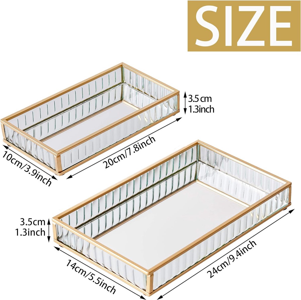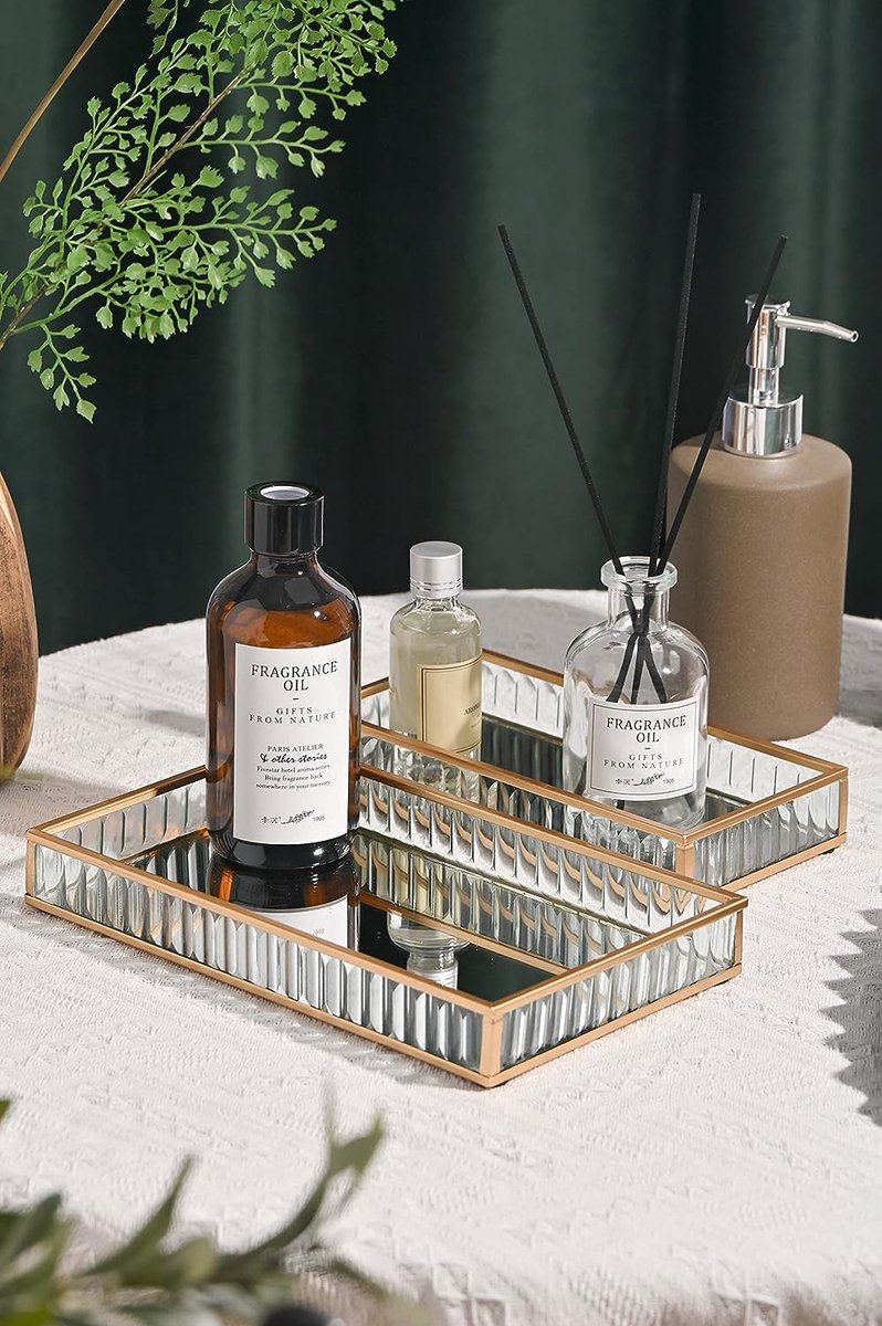 Matériau-bol en verre transparent avec fond miroir,unique sans design de couvercle pour un rangement et un affichage faciles. Choix de cadeau parfait Quand des amis ou de la famille viennent d'emménager dans une nouvelle maison, c'est un vrai casse-tête de leur offrir un cadeau qu'ils n'ont pas déjà reçu. Plateau De Service Plateau à Bijoux En Verre Avec Fleur Bleue - Joli Organisateur De Miroir Coiffeuse Plateau cosmétique de récipient de bijoux de plat de de de d'acier... Le plateau en miroir est un cadeau spécial auquel personne n'aura pensé et qui peut aider vos proches à remplir leur maison d'une décoration intelligente. À propos Teresa's Collections Teresa's Collections est une marque de vente au détail d'EagleGifts. C'est l'accompagnement parfait pour votre dressing. Un cadeau parfait pour ceux qui apprécient les accessoires de maison exclusifs comme cadeaux pour les anniversaires, les registres de mariage, la pendaison de crémaillère, etc. Dimensions 2*plateaux à bijoux 7,8 x 3,9 x 1,1 pouces/9,4 x 5,5 x 1,3 pouces. Nous espérons offrir à nos consommateurs des produits beaux, réfléchis et intemporels de manière directe. Vous aide à redéfinir votre comptoir,salle de bain,chambre,commode,vanité Fini avec une garniture de couleur or, le plateau en miroir offre une impression de style à la fois vintage et audacieuse. Ces plateaux à bijoux avec miroirs sont de véritables petits bijoux pour votre intérieur. Pratiques et élégants, ils vous permettent de ranger vos bijoux en toute simplicité tout en apportant une touche de décoration à votre pièce Ensemble de 2 plateaux de coiffeuse,dimensions du produit:24x14x3,5cm et 20x10x3cm. Le plateau est un bon moyen de réduire l'encombrement sur votre comptoir Soyez gentil, restez cool et faites du shopping. Plateau Parfum Plateau Miroir Doré PuTwo - Plateau De Coiffeuse Et Organisateur à Bijoux, Parfums Et Maquillage Plateau Rangement Parfums