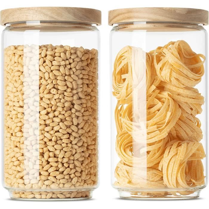 Taille parfaite – Lot de 6 bocaux de conservation en verre (800 ml par verre) ; bocaux de rangement de cuisine pour céréales, noix, épices et collations ; permet de mettre de l'ordre et d'avoir une vue d'ensemble. Bocaux En Verre Cuisine Bocal En Verre Rayé Avec Couvercle En Bois D'acacia Par JS Gourmet, 0.7 L Bocaux Verre Cuisine Le joint en silicone ajusté rend les bocaux étanches à l'air et aux arômes, de sorte que vos aliments restent frais plus longtemps et protégés de l'humidité. Bocaux De Rangement En Verre Borosilicate Avec Couvercle Hermétique En Bois De Bambou, Pots De Conservation Alimentaire, Boît[J1193 Les couvercles en bois se nettoient facilement à la main, ce qui favorise la durabilité du joint. Avec Navora optez pour des bocaux de conservation sans BPA avec couvercles qui sont durables, durables et polyvalents. VD WEIDE ENTERPRISE - Boîtes de conservation des aliments avec... Ainsi, les bocaux de conservation peuvent être nettoyés de manière hygiénique et rangés sans prendre de place. Grâce à son design transparent, vous avez toujours une vue d'ensemble du contenu. Que ce soit comme bocaux de rangement pratiques pour la cuisine, comme bocaux à épices ou comme couvercle en verre ou pour un rangement décoratif dans l'armoire, cet ensemble apporte qualité, fonctionnalité et style à votre maison. Utilisation polyvalente – Récipient en verre de cuisine idéal pour le stockage des aliments, bocaux à épices, couvercles en verre, bocaux à céréales, bocaux de conservation et organisateur de cuisine. Les récipients en verre alimentaire passent au lave-vaisselle, sont inodores et empilables. Hermétiques et sans BPA – Bocaux de conservation avec couvercle hermétique grâce à l'anneau en silicone ; idéal pour le stockage des aliments tels que les pâtes, le riz, la farine, le café et les collations.
