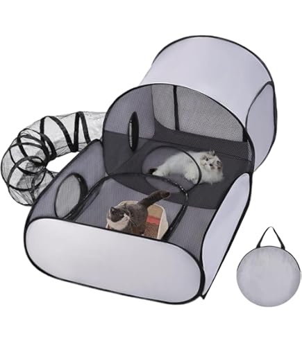 Enclos Chat Extérieur avec Tente & Tunnel – J'aime Vraiment Chat Caractéristiques:Nom du produit: cube de tente de tunnel de chatMatériel produit: maillageTaille du produit: environ 40,5x41x39cm / 15., 94x16., 14x15., 35 poucesPoids du produit: environ 332gListe de colisage:1 morceaux * cube de chat pour tunnelNote:En raison de différents paramètres d'éclairage et d'écran, la couleur de l'élément peut être légèrement différente de l'image. Maison Chat Respirante Pawtenda Enclos D'extérieur 3 En 1 Pour Chat, Portable, Avec 1 Tente En Dôme, 1 Tunnel Droit Et 1 Cube, Parc D'extérieur Pour Chats, Lapins Et Autres Animaux Cube Repos Chaton Lapin Ce cube pour chat est conçu pour répondre aux besoins essentiels des animaux domestiques avec simplicité et efficacité. Offrez à votre chat un endroit pour se détendre, dormir et jouer avec notre collection de tipis et de tentes pour chats. Parcourez cette gamme et obtenez-en une qui correspond aux besoins de votre animal et à l'esthétique de votre maison Design extensible : les chats adorent se lancer à travers les cubes et les tunnels amovibles. Le design extensible s'adapte aux besoins de vos animaux de... Sa connexion facile aux tunnels crée un système de jeu évolutif s'adaptant au mode de vie actif et aux comportements instinctifs de votre animal. Sécurité et Stabilité : Fabriqué avec des matériaux sûrs pour animaux et une structure en acier fiable, ce cube pour chat résiste aux rayures et assure des performances au quotidien. Idéal pour les voyages et activités extérieures, son design pratique optimise la satisfaction utilisateur. Sa structure pliable et offre une grande commodité, permettant de l'installer facilement comme maison ou parc d'activités pour animaux dans des appartements tout en répondant à leurs besoins de griffade et de repos. Design accessible : Ce cube pour chat offre des points d'entrée/sortie polyvalents favorisant l'exploration. Description du produit Le cube pour chat présente une conception en maille respirante, adapté aux animaux de compagnie tels que les chatons, les lapins et les chiots pour jouer, se reposer et grimper en toute sécurité à l'intérieur ou à l'extérieur sur des balcons, terrasses ou dans les jardins.