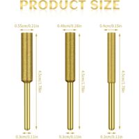 Fraises Diamantées Enduites 5 Pcs Argent Diamant Enduit Cylindrique Tronçonneuse Affûteuse La tête de meulage recouverte de diamant doré peut être utilisée avec des meuleuses électriques, des perceuses électriques, etc., non seulement pour polir les chaînes de tronçonneuse, mais également pour meuler et sculpter des carreaux, du verre, du marbre, des pierres précieuses, de l'ardoise, etc. Polir la surface en douceur et à... Accessoire Perceuse Meuleuse Meuleuse,Diamant Enduit Cylindrique Bavure 4mm Tronçonneuse Aiguiseur Pierre Fichier - 6Pc Gold Tête De Meulage Diamantée 4mm Outil d'affûteuse de chaîne de dents de tronçonneu... – Grandado non seulement pour polir les chaînes de tronçonneuse, mais également pour polir les sculptures sur pierre, le jade, les pierres précieuses, etc., 4., Utilisation : fabriqué selon les spécifications standard, augmentant la surface de contact de meulage de la tête de meulage, améliorant efficacement l'efficacité de meulage, garantissant l'absence de pollution par la poussière et gardant la tête de meulage de la rectifieuse à chaîne propre., 5., Processus : polissage fin, la tête de meulage adopte des particules d'émeri dures, le polissage est fin et uniforme, et les lignes sont lisses, de sorte que la surface de l'objet est lisse et plate, et le fonctionnement est stable et efficace. Spécifications : Couleur : or Matériau du produit : émeri, carbure cémenté Poids du produit : 20 g/25 g/30 g Nombre de mailles : environ 120-150 mailles Diamètre de la poignée de la tête de meulage : 3 mm Diamètre de la tête de meulage : 4 mm/4,8 mm/5,5 mm Longueur de la surface de meulage : 24 mm/25 mm/18 mm Longueur totale de la tête de meulage : 46 mm/49 mm/45 mm Liste de colisage : 5 têtes de broyage X, 1., Comprend : 5 pièces X têtes de meulage, quantité suffisante, ces têtes de meulage pour affûteur de tronçonneuse, peuvent être utilisées pour affûter la surface de coupe de la scie pour rendre la scie plus nette., 2., Matériel : La surface polie est faite de particules d'émeri ; la poignée est en alliage dur avec une dureté et une résistance à l'usure élevées.