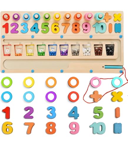 En disposant les pièces magnétiques, les enfants peuvent comprendre intuitivement la relation entre les chiffres et les quantités, construire des concepts mathématiques de base et améliorer leur motricité fine ainsi que leur coordination œil-main — posant ainsi les bases de futurs apprentissages. Jeu magnétique 3-8 ans - Jeu de construction avec magnétique stick – L APPRENDRE & CROÎTRE: Aide à comprendre les chiffres et quantités. Livre Magnétique Mathématiques Préscolaire Dr. MUYA® Jouet Enfant 2 3 4 5 Ans, Jeux Montessori 2 Ans, Jeux Enfants 2 Ans, Dinosaure Jouet, Planche à Vis En Bois, Cadeau Enfant Garcon 2-5 Ans Jeu éducatif Montessori Il constitue un excellent compagnon pour l'apprentissage précoce des mathématiques, aidant les enfants à explorer les merveilles des chiffres à travers le jeu. Les parents peuvent guider les enfants dans la reconnaissance des chiffres et des quantités, renforçant les liens par un jeu ludique et détendu et créant de précieux moments en famille. Jeu éducatif - Montessori - Pêche magnétique - 12 poissons en bois... CADEAU PARFAIT: Un excellent choix pour Noël, Pâques ou un anniversaire. Apprentissage ludique des maths. Jeu magnétique 3-8 ans - Jeu de construction avec magnétique stick – L... Avertissement De Sûreté Ne convient pas aux enfants de moins de 3 ans. Que ce soit pour Noël, Pâques ou un anniversaire, ce jouet constitue un cadeau pratique et sincère qui apporte surprise et joie aux enfants. Peinture à l'eau vive, sûre et attrayante pour les enfants. Description du produit Ce jouet Montessori est spécialement conçu pour les enfants de 3 4 5 ans et comprend un livre magnétique, 23 aimants numériques, 42 aimants dinosaures, 12 symboles d'opérations et un manuel. TEMPS PARENT-ENFANT: Favorise l’interaction parent-enfant.