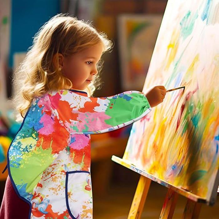 Tablier De Peinture Enfant JEU DE COLORIAGE Tablier Peinture Enfant, Blouse Peinture Enfant Ensemble 6-12 Ans, Blouse Imperméable Réutilisable Avec Poche - Beaux-Arts Et Loisirs Créatifs Blouse Enfant Ecole 2 Pièces Tablier Enfant, Peinture Blouse DArt Imperméabletablier, Peinture Enfant Pour LéCole, Le Dessin, La Cuisine,La PâTiss - Beaux-Arts et Loisirs créatifs Imperméable, il est facile à nettoyer. Dotés d'une poche à l'avant et d'une ceinture à l'arrière, ils sont à la fois élégants et pratiques pour ranger les outils de peinture pendant les activités scolaires. CADEAU DE PEINTURE POUR ENFANTS -- Notre tablier pour enfants est réutilisable, il est léger et facile à transporter. Le tablier présente des motifs uniques imprimés avec des pinceaux et des planches à dessin. Il convient très bien aux enfants qui aiment dessiner 【AIDE PARFAITE】: Ce tablier de peinture pour enfants est idéal pour permettre aux enfants de jouer librement avec les couleurs et la peinture tout en peignant ou en faisant du bricolage, sans avoir peur de salir leurs vêtements ! 【Matériau imperméable】: Fabriqué à partir de matériaux de haute qualité, ce tablier de peinture est facile à nettoyer et sèche rapidement, idéal pour l'école et la maison. Design classique : nos tabliers pour enfants sont dotés de manches longues et de poignets élastiques, confortables et doux, qui ne laisseront pas de traces sur les poignets de l'enfant après une utilisation prolongée. 【PACKAGE】: 1 x tablier de peinture pour enfants., Couleur : bleu.