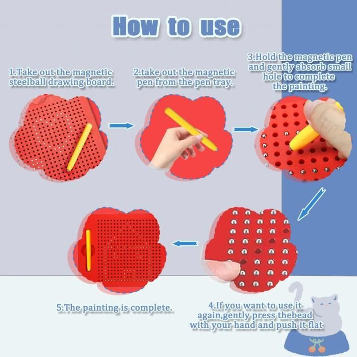 Les billes d'acier magnétique sont scellées de manière permanente à l'intérieur du tableau, elles sont plus grandes que les trous, ce qui garantit qu'elles ne peuvent pas se détacher. Tablette Magique Enfant Ardoise Magique Enfant,Tableau Magique Avec Pieds Amovibles Et Stylo Tablette Avec Billes Magnétiques Manipuler le stylo et les billes améliore le contrôle moteur fin, la coordination œil-main, le raisonnement spatial et les compétences précoces en écriture/dessin. Les enfants soulèvent facilement les billes d'acier magnétique à la surface à l'aide de la pointe du stylo pour dessiner des lignes, des chiffres, des lettres ou des images sur le tableau rouge ou le tableau magnétique en forme de pomme. 【Favorise l'Apprentissage Précoce et le Développement des Compétences】Un outil éducatif précieux. 【Design Compact Contre l'Ennui, Partout】La solution idéale pour divertir les enfants en déplacement. Tableau Dessin Magnétique - HAOPYOU - Ardoise Enfant - Portable La taille compacte et le stylo magnétique de 3,9 pouces inclus font de ce tableau magnétique le meilleur outil de dessin pour les enfants, à emporter partout. Les coins arrondis et un design robuste, sécurisé par des vis, offrent une tranquillité d'esprit supplémentaire pour les parents. Notre tablette magnetique enfant avec lequel les enfants jouent est fabriqué à partir de plastique ABS de haute qualité et non toxique. Aucun paramétrage, aucune pile, juste un jeu créatif immédiat. Il se range facilement dans un sac à dos, un sac à couches ou une poche de siège auto. Peinture magnétique : 5 étapes pour créer un espace pour les enfants Starvortex Lot de 2 tableaux à dessin magnétiques pour enfants à partir de 1, 2, 3 ans, en ABS, durable, avec stylo magnétique, jouet éducatif... Marre des distractions numériques ou des plaintes en voyage ? Notre ensemble de tableaux magnétiques compacts est la solution !, 2., Pas d'encre, pas de papier, pas de nettoyage ! 【Conçu pour la Sécurité et la Durabilité des Enfants】La sécurité est primordiale. 【Créativité sans Effort pour les Jeunes Artistes】Un amusement simple et intuitif ! Description du produit Spécifications : Matériau : ABS Couleur : Rouge Dimensions : Rectangulaire : 17., 5 x 21., 8 cm pouces Pomme : 12 cm de diamètre Le paquet comprend : 1 × tableau magnétique rectangulaire 1 × tableau magnétique en forme de pomme 2 × stylos magnétiques Caractéristiques : 1., Stop à l'écran et aux crises en voyage !