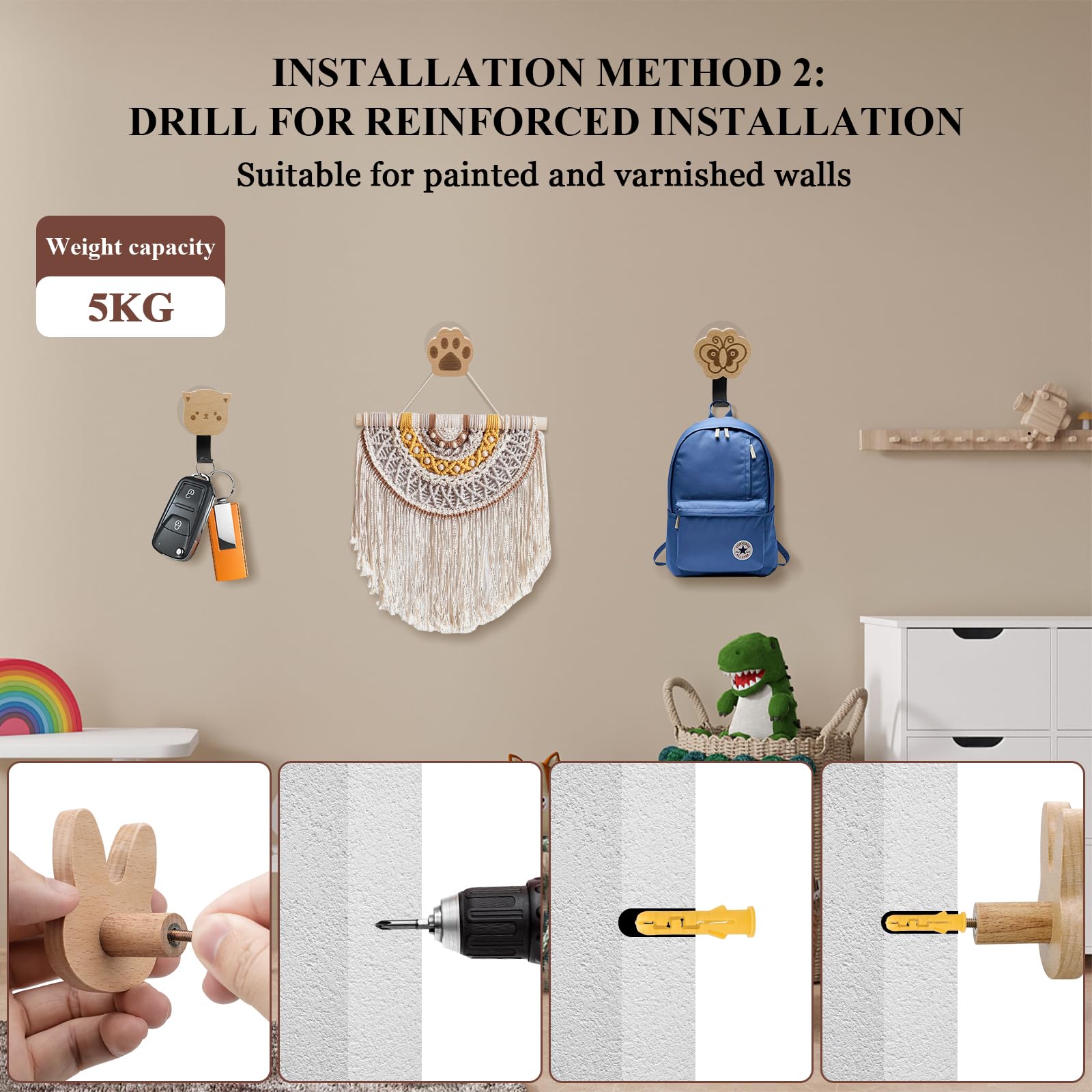 PORTE MANTEAU MURAL pour enfant - 5 patere murale en forme de voitures... Matériaux de Haute Qualité : Ce porte manteau enfant mural est fabriqué en bois naturel soigneusement sélectionné avec une texture ferme, un beau grain et une grande durabilité, il reste en bon état même après une utilisation quotidienne et peut accrocher toutes sortes d'objets de manière sûre et stable Fonctions Polyvalentes : Ce patere enfant peut être utilisé comme porte-manteau dans la chambre, l'entrée et la chambre d'enfant pour ranger les objets du quotidien ; il peut également servir de poignée pour les armoires et les penderies, ajoutant une touche de jolie couleur au rangement de la maison, alliant fonctionnalité et effet décoratif Patère Bois Enfant Patère Murale Bois Porte-manteau Enfant étoile De Mer - Déco Chambre Montessori Patère Bois Montessori Patère Déco Chambre Avec Vis Chevilles Artisanat Exquis : avec un savoir-faire exquis, les bords du porte manteau mural bois sont finement poncés et polis, le design simple est assorti à la couleur naturelle du bois, qui se marie parfaitement avec divers styles d'ameublement et apporte la touche finale à la décoration intérieure Support Mural Pour Porte-Manteau Patère Murale Décoration Animale... Dénomination du Produit:Patère BoisRenseignements sur Le Produit:1., Couleur : Couleur Bois D'origine2., Matériau : BoisFonctions du Produit:Contient 5 types de formes d'animaux de dessins animés, vives et animées, ajoutant une atmosphère animée à votre maisonFabriqué en bois naturel, solide et durable, peut accrocher fermement toutes sortes d'articlesAspect bois simple et finement poli, adapté à une variété de styles de décoration intérieureEquipé de tubes d'expansion et de vis, facile à installer, peut être utilisé comme crochets à vêtements ou poignées d'armoires Contenu du Colis :-5 × Crochet Chambre Enfant-5 × Vis-5 × Tubes D'expansionEngagement de Service :Si vous avez besoin de plus de détails sur le produit ou avez des suggestions, n'hésitez pas à nous contacter par e-mail, nous veillerons à vous fournir des réponses professionnelles dans les 24 heures suivant la réception de votre e-mail Patère bois et cuir - Matières Patères - Patère Murale