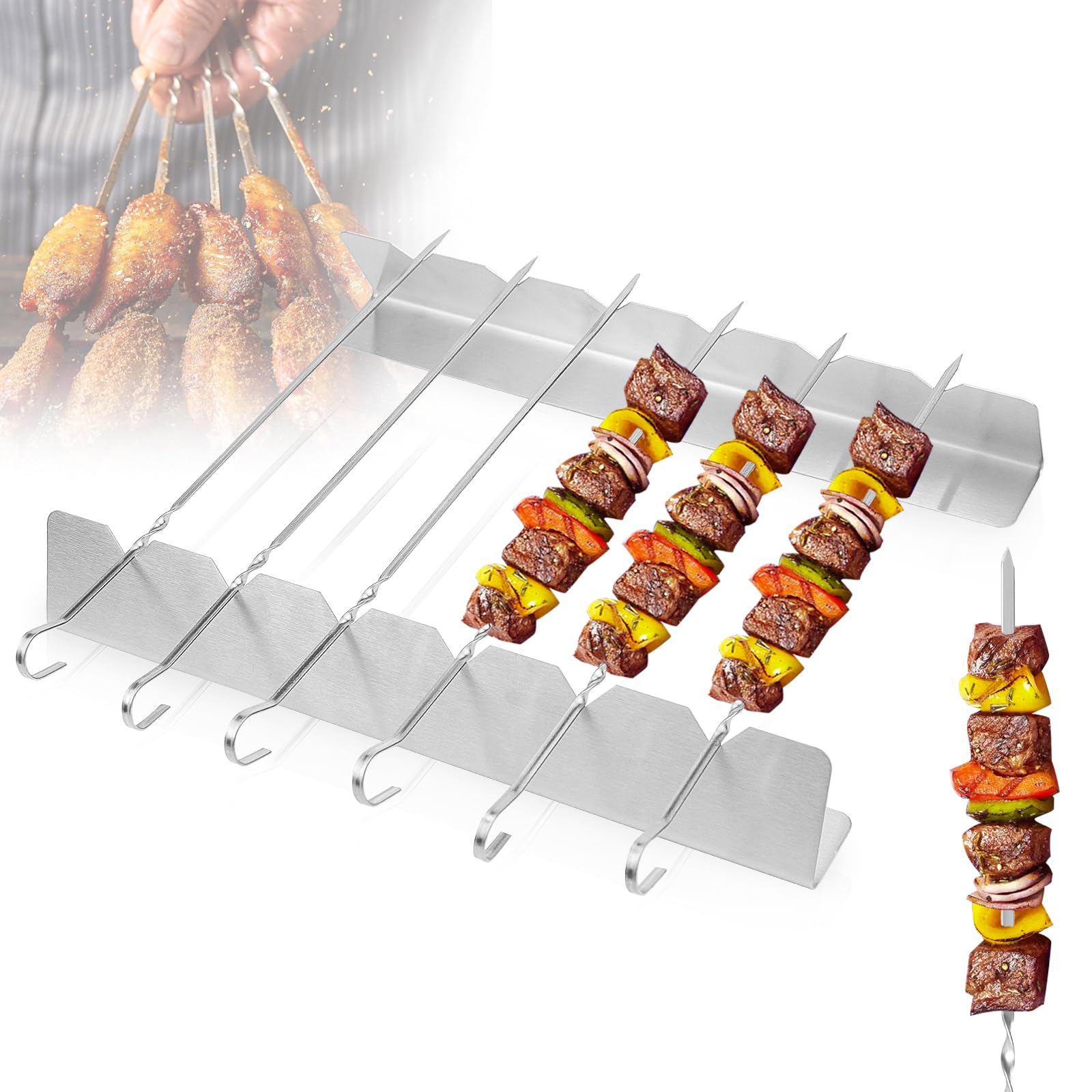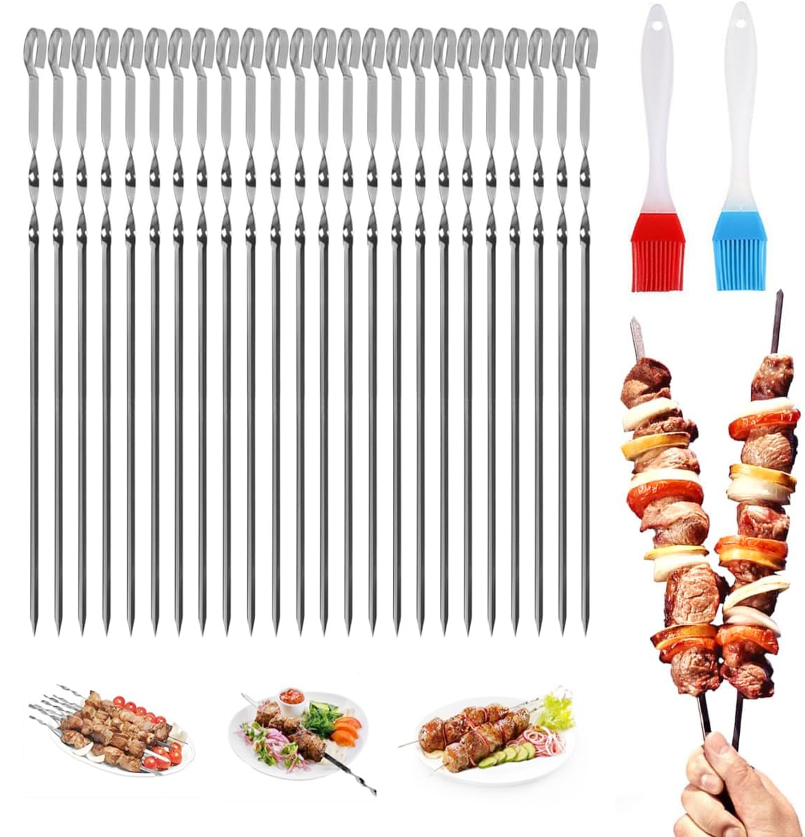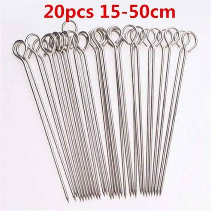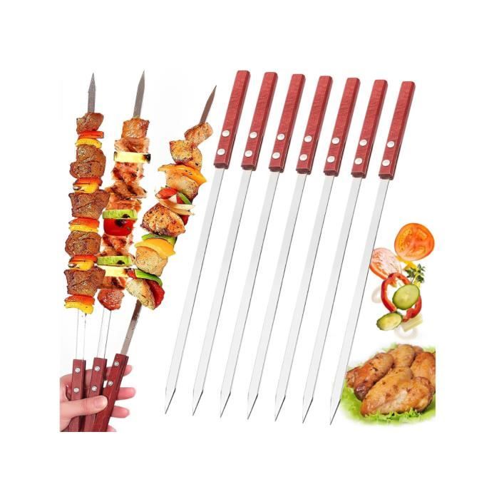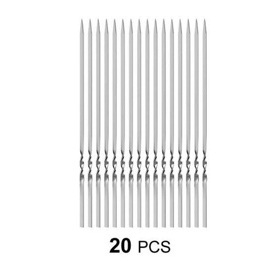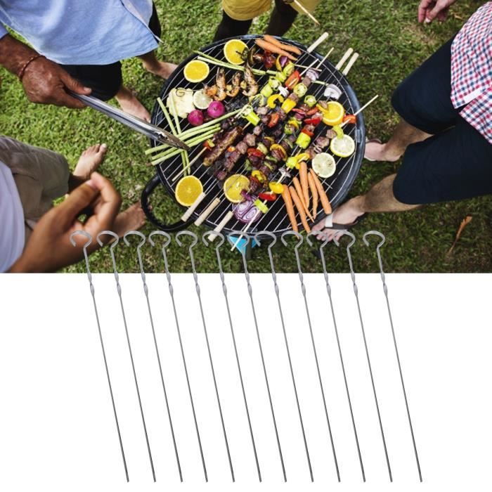 Pic A Brochette Inox Ensemble 20 Brochettes En Acier Inoxydable Barbecue Poignée Brochettes Acier Inoxydable Barbecue 20x Brochettes/brochettes De Barbecue En Métal 40 Cm Accessoires Pour Barbecue Pics A Brochettes Brochettes Pour La Viande Qui n'a jamais galéré à enlever sa viande de brochette sans en mettre partout (et sans finir par tout manger direct sur le pic) ? Le... La conception plate empêche la viande de glisser et les brochettes de 40 cm s’adaptent à la plupart des barbecues ou cuisinières à gaz. Le crochet à l'extrémité permet de les suspendre au four. Caractéristiques : Matériau : Acier inoxydable 304 de qualité alimentaire Dimensions : 40 cm x 0,5 cm x 1,5 mm Contenu : 20 brochettes en acier inoxydable + sac de rangement Les brochettes sont fabriquées en acier inoxydable 304 de qualité alimentaire, résistant à la rouille, à la chaleur et inflexible, pour une tranquillité d’esprit optimale. Dimensions Standard : 40 cm de long, 0,5 cm de large et 1,5 mm d’épaisseur. Nettoyage Facile : Les brochettes en métal ont une surface lisse et peuvent être lavées à la main à l’eau tiède ou au lave-vaisselle Remarque : Les brochettes ont des pointes pointues ; tenir hors de portée des enfants La conception plate empêche la viande de glisser et les brochettes de 40 cm sadaptent à la plupart des barbecues ou cuisinières à gaz. Les poignées torsadées facilitent la rotation et le positionnement des brochettes, quel que soit l'angle et le bord du gril