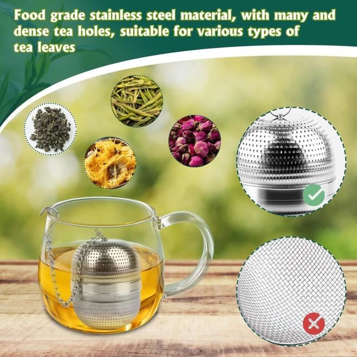 Après le lavage,laissez-le sécher à l'air libre pour préserver sa qualité et garantir une utilisation prolongée pendant des années Infuseur à Thé Inox Lntyq Ensemble De 2 Infuseurs à Thé En Acier Inoxydable Avec Long Manche Boule A The Infuseur The Filtre A The Filtre A The Pour Tasse A The 87456699 Infuseur Pour Thé Feuilles Et épices Filtration efficace: Conçu avec de petits trous en acier inoxydable,cet infuseur à thé empêche les feuilles de thé de s'échapper tout en garantissant une infusion propre et sans résidus. Description de Lot de 2 infuseurs à thé en acier inoxydable 304 avec filtre à feuilles. PRÉSERVEZ LES SAVEURS ET LES HUILES : Contrairement aux filtres en papier qui altèrent les saveurs essentielles, nos filtres en acier inoxydable préservent tous les arômes pour une infusion parfaite Sa solidité et sa durabilité en font un choix idéal pour une utilisation quotidienne Facilité d'utilisation: Ajoutez vos feuilles de thé en tournant et en tirant le tube,puis refermez-le en le tournant et en le poussant. Ces deux infuseurs en acier inoxydable 304 sont top qualité - sans danger pour la santé, résistants à la chaleur et faciles à nettoyer. Les petits trous... Matériau durable: Fabriqué en acier inoxydable de qualité alimentaire,cet infuseur à thé est robuste,résistant et conçu pour durer. Une petite brosse est incluse pour faciliter le nettoyage après utilisation Matériau durable: Fabriqué en acier inoxydable de qualité alimentaire,cet infuseur à thé est robuste,résistant et conçu pour durer. Placez l'infuseur dans votre tasse ou théière,attendez quelques minutes et profitez d'une tasse de thé parfaitement infusée Lot de 2 Grands Infuseurs à Thé pour Infuseurs à Thé et à éPices en Parfait pour une utilisation à la maison,au bureau,en voyage ou lors de déplacements professionnels Entretien simplifié: Cet infuseur à thé est très facile à nettoyer et compatible avec le lave-vaisselle.