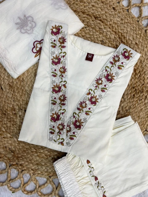 Recherche : costumes indiens anarkali pour femme Salwar Kameez indien pour femme Coupe droite Ensembles kurti indiens pour femme mariage pakistanais Salwar Kameez EEEz. Rafraîchissez votre garde-robe ethnique avec cet ensemble kurti brodé pour femme avec pantalon et dupatta, conçu pour une élégance moderne et un charme traditionnel. Le lot est complété par une luxueuse dupatta en soie... Idéal pour ceux qui recherchent des ensembles prêts à porter Salwar Kameez ou des ensembles kurti à coupe droite. De belles broderies aux chevilles ajoutent une touche charmante et traditionnelle. Salwar Kameez Brodé Chanderi Dupatta Soie The Red Lion Enterprise Ensemble De 3 Pièces Kurti Dupatta Pour Femme Tenue Ethnique Chanderi Fête Ensemble élégant Kurta et pantalon : le kurta de 111,8 cm et le pantalon de 94 à 96,5 cm offrent une coupe flatteuse, tandis que les manches 3/4 de 40,6 cm assurent un look élégant. Améliorez votre garde-robe ethnique avec ce salwar kameez prêt à porter pour les femmes, soigneusement conçu pour les invités de mariage et les célébrations festives. Tissu Chanderi de qualité supérieure : fabriquée à partir de pure viscose, cette tenue offre confort et style, parfaite pour les tenues d'invités de mariage et les tenues festives comme les costumes Anarkali ou le salwar kameez pakistanais. Dupatta de luxe en soie imprimée florale : la dupatta en soie jacquard à imprimé floral ajoute une touche d'élégance, ce qui en fait un choix idéal pour les robes de mariée indiennes ou les costumes spéciaux de l'Aïd. Polyvalent pour de nombreuses occasions : parfait pour les robes indiennes pour les femmes, les mariages ou les fêtes et les festivals comme Diwali, Navratri ou Mehndi. Le pantalon en viscose assorti offre une taille élastique avec un cordon de serrage, assurant un ajustement flatteur et réglable. Idéal pour les femmes. Ensemble Kurti brodé pour femme – Comprend un kurti avec une belle broderie, un pantalon assorti et une dupatta légère. Confort et élégance : fabriqué avec un tissu de qualité supérieure pour garantir un ajustement respirant et confortable pour les fêtes tout au long de la journée Fabriqué à partir de tissu Chanderi de qualité supérieure, cet élégant ensemble kurti à coupe droite présente des broderies complexes à la main sur l'encolure et les manches, alliant l'art traditionnel à la sophistication moderne. Instructions d'entretien faciles : lavable en machine ou à la main pour un entretien sans tracas. La classique pois brodés Deco Nylon et polyester | Huit