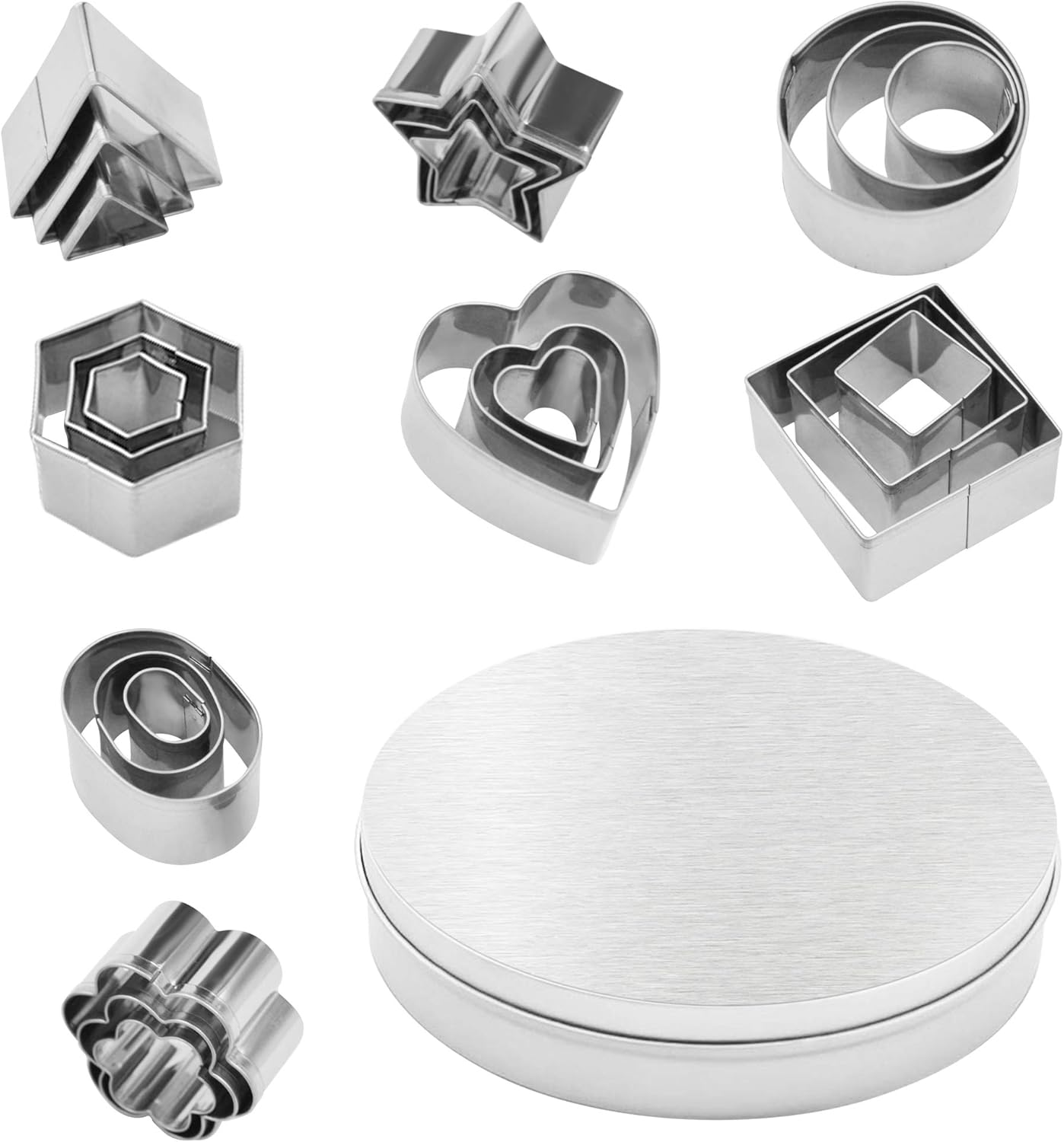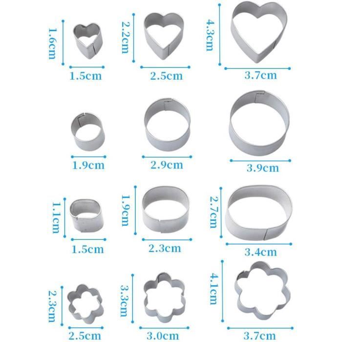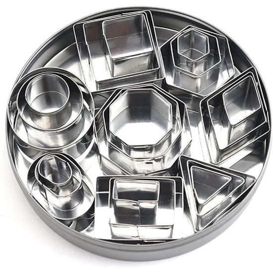 Il peut vous aider à faire des pâtisseries créatives. Cela peut prolonger la durée de vie. Lot 24 Formes Géométriques Ensemble De 5 Emporte-PièCes En De Coeur Saint-Valentin Emporte-PièCe Mini Emporte Piece Emporte-pièces-paquet de 12 ensemble de cuisson en acier inoxydable en... ★ Matériau de sécurité alimentaire : fabriqué en acier inoxydable 430 de qualité alimentaire, il est sûr et sain à utiliser, résistant aux hautes températures, antirouille, pas facile à déformer, et durable. Description du produit : ★ Ustensiles de cuisine parfaits : convient non seulement pour les gourmets, les boulangers, les chefs et autres professionnels, mais aussi pour toute la famille. ★ Contenu de l'emballage : 24 emporte-pièces Service : ★ Nous sommes très confiants dans nos produits. Le bord pliable de l'emporte-pièce et la bonne technologie de connexion peuvent protéger vos mains et vous donner une sensation agréable au toucher. Il y a huit formes, et chaque forme a 3 tailles différentes. C'est une condition préalable pour faire des aliments intéressants avec vos enfants. Il est également adapté pour diverses occasions, telles que les fêtes d'anniversaire, Thanksgiving, Noël, les anniversaires, etc. ★ Taille de la boîte en étain : diamètre 12,5 cm, hauteur 2,5 cm. Matériau de sécurité alimentaire : fabriqué en acier inoxydable 430 de qualité alimentaire, il est sûr et sain à utiliser, résistant aux hautes températures... Comprend des fleurs, des étoiles, des cœurs, des cercles, des carrés, des triangles, des hexagones et des ellipses. Il suffit d'appuyer sur la forme de l'emporte-pièce dans la pâte à biscuits pour démouler facilement et rapidement et maintenir la forme du biscuit. Les parents peuvent profiter de cette occasion pour apprendre aux enfants à connaître plus de formes et à améliorer leurs capacités manuelles. 12 mini emporte pièces métal formes géométriques : Chez