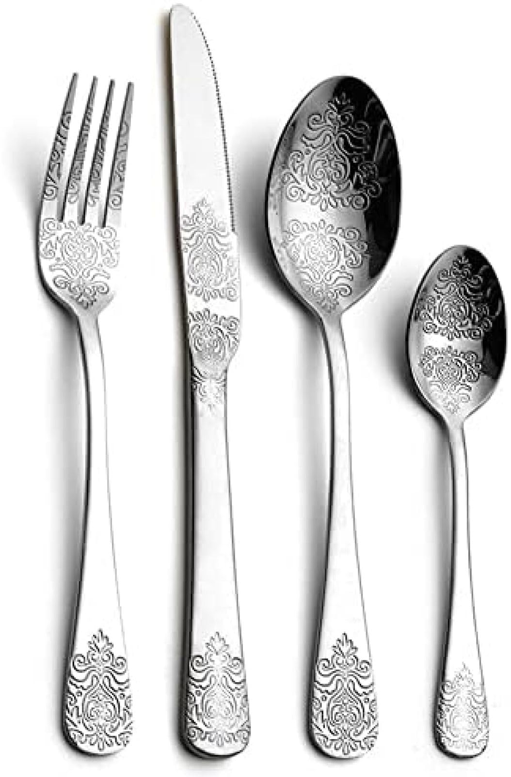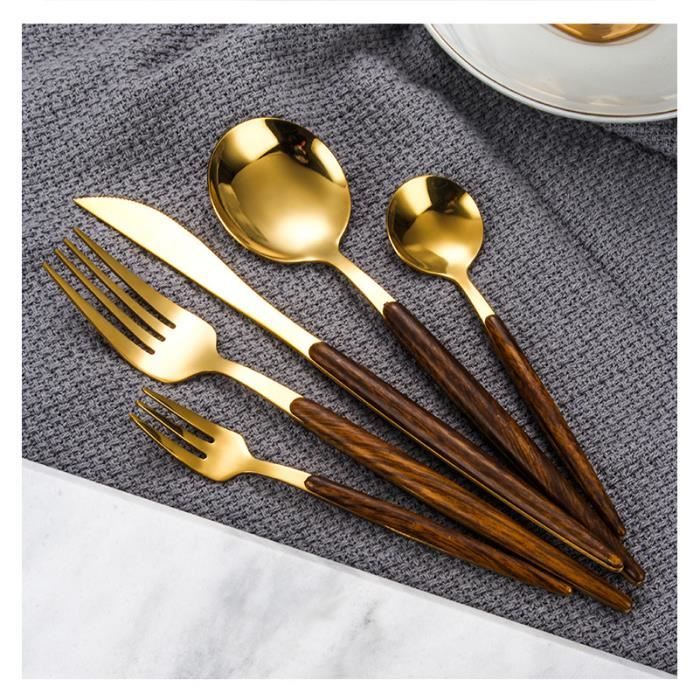 Ensemble d'argenterie, 24 pièces en argent ensemble de Couverts Imitation Bois Manche Marron Argenté Ensemble De Couverts Imitation Manche En Bois En Acier Inoxydable Doré Couteaux à Steak Points forts : 6 couteaux de table, 6 cuillères à dîner, 6 fourchettes à dîner, 6 cuillères à café; Matières : Acier inoxydable 401; Compatibilité lave... Ensemble de couverts complet : cet ensemble comprend des couteaux, des fourchettes et des cuillères, offrant tout ce dont vous avez besoin pour une expérience culinaire parfaite, que ce soit à la maison, au restaurant ou en pique-nique. Couverts Imitation manche en bois acier inoxydable, ensemble de... Design occidental élégant : avec une esthétique moderne, cet ensemble de couverts améliore n'importe quelle table, ce qui le rend parfait pour les dîners de famille, les repas à l'hôtel ou au restaurant. Idée cadeau élégante : un cadeau attentionné pour les mariages, Noël ou les occasions spéciales, cet ensemble de vaisselle allie fonctionnalité et style, ce qui en fait un complément parfait à n'importe quelle cuisine.