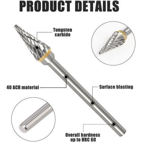 [Découpe multi-matériaux] Peut couper divers matériaux, notamment la fonte, l'acier, le bronze, etc. Fraises Carbure Cémenté Acier Bronze Ensemble De Fraises Rotatives En Carbure Cémenté (bavure Outil Sculpture Métal [Résistance à l'abrasion à haute dureté] Ces fraises sont fabriquées à partir de carbure cémenté, garantissant durabilité et longévité. Tigrezy Cutter à Queue de 6mm Menuiserie Outil, Woodworking Travail... Pourrait couper la fonte, l'acier moulé, l'acier à roulement, l'acier à haute teneur en carbone, l'alliage de chrome-, le bronze, le laiton, le marbre, le jade, l'os, etc. Spécifications : Matériau : carbure cémenté Diamètre de la tige : 6 mm Diamètre de la tête : grand F : 12 mm ; Petit F--10 mm ; C--10 mm ; D--10 mm Quantité : 4 Le forfait comprend : 4 x fraises rotatives Fraise carbure cémenté diamètre 25 mm 6 flûtes - HURRISE - pour tour... La tige ronde de 6 mm s'adapte à de nombreux outils électriques ou pneumatiques. [Sculpture de mise en forme précise] Largement utilisé pour façonner, sculpter et enlever les matériaux en excès pour obtenir des résultats précis. [Haute dureté et résistance à l'abrasion] Ces fraises sont fabriquées à partir de carbure cémenté, garantissant durabilité et longévité. Fraise à fente, fraise à bois en carbure cémenté avec deux fraises de ce qui en fait un outil incontournable pour les métallurgistes. [Façonnage et sculpture précis] Largement utilisé pour façonner, sculpter et éliminer les matériaux en excès afin d'obtenir des résultats précis.