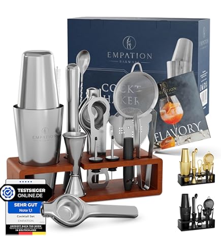 750Ml Shaker Cocktail, 10 Pièces Inox Shaker Vinaigrette Avec Support Shaker À Cocktail De Barman Ensemble De Bouteilles Shaker À Cocktail En... Machine A Cocktail Ensemble Shaker à Cocktails , 10 Pièces En Acier Inoxydable Avec Support En Bambou, Accessoires Pour Doseur Cocktail Ce set complet de shaker à cocktails répondra à tous vos besoins en matière de cocktails, comprenant un shaker, une cuillère à mélanger, un pilon et bien plus encore. Explorez l'art du barman grâce aux cartes de cocktails incluses, proposant des recettes de mojito, martini, margarita, whisky, whisky écossais, vodka, tequila, gin, rhum, saké, et bien plus encore Hililand Shaker à martini Shaker à cocktail Shaker de barman en acier... Grâce à leur revêtement anti-traces de doigts, ils conservent leur aspect neuf même après une utilisation prolongée Présentoir et support de rangement : Ce support en bambou, bien conçu, embellit et harmonise votre bar. Choix de cadeau parfait : cet ensemble de shaker de bar est le cadeau parfait dont tout le monde parlera à la fête, il convient non seulement à un large éventail de rassemblements, mais est également livré dans un emballage élégant, ce qui le rend parfait pour les vacances et les célébrations spéciales, ajoutant une touche élégante lors de l'offre Il permet non seulement de ranger vos accessoires de bar, mais aussi de gagner de la place, valorisant ainsi votre style professionnel et votre goût unique