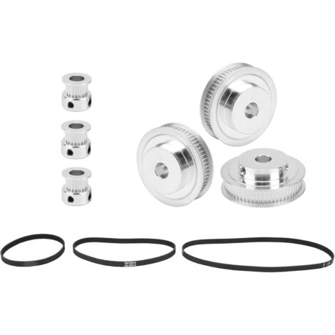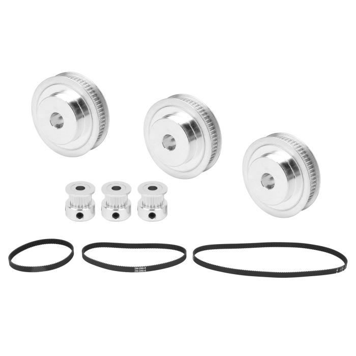 Avec un pas de dent précis pour une transmission fluide, entraînant une efficacité de transmission élevée et des avantages d'économie d'énergie. Fdit Roue synchrone en aluminium Roue Synchrone Poulie de Distribution Poulies Pour Machines Industrielles JIA - 2 Ensembles Roue Synchrone 20T 60T GT2 Poulie De Courroie De Distribution 8mm 5mm Poulie GT-2 Description:Matériau: Les roues synchrones sont en alliage d'aluminium, garantissant durabilité, ingénierie de précision et haute précision de transmission. Conception Conviviale: Avec une structure simple facile à installer, assembler et désassembler, offrant commodité et flexibilité lors de la configuration et de la maintenance. 4X GT2 poulie 20 dents alésage 5mm GT2 6mm courroie de distribution et 4X tendeur 8X tendeur... Transmission Fiable: Assure un fonctionnement sans faille sans glissement, maintenant un rapport de vitesse constant pour des performances fiables. Application Polyvalente: Convient à une large gamme d'applications de transmission de machines industrielles, y compris les fraiseuses, les perceuses, les machines à tailler les engrenages, et plus encore, offrant polyvalence et fiabilité dans divers environnements. Transmission et Fonctionnement: Assure un fonctionnement sans faille sans glissement, maintenant un rapport de vitesse constant pour des performances fiables. Spécification:Couleur: Tonalité ArgentMatériau: Alliage d'AluminiumNombre de dents: 20T&60TTaille de la Roue Synchrone GT-2 60 Dents: 5x44x17mm(Diamètre Intérieur*Diamètre Extérieur*Épaisseur)Taille de la Roue Synchrone GT-2 20 Dents: 5x16x16mm(Diamètre Intérieur*Diamètre Extérieur*Épaisseur)Largeur de la Rainure: 7mm (60T&20T)Dimension de la Courroie de Distribution: 280x6mm(Longueur*Largeur)