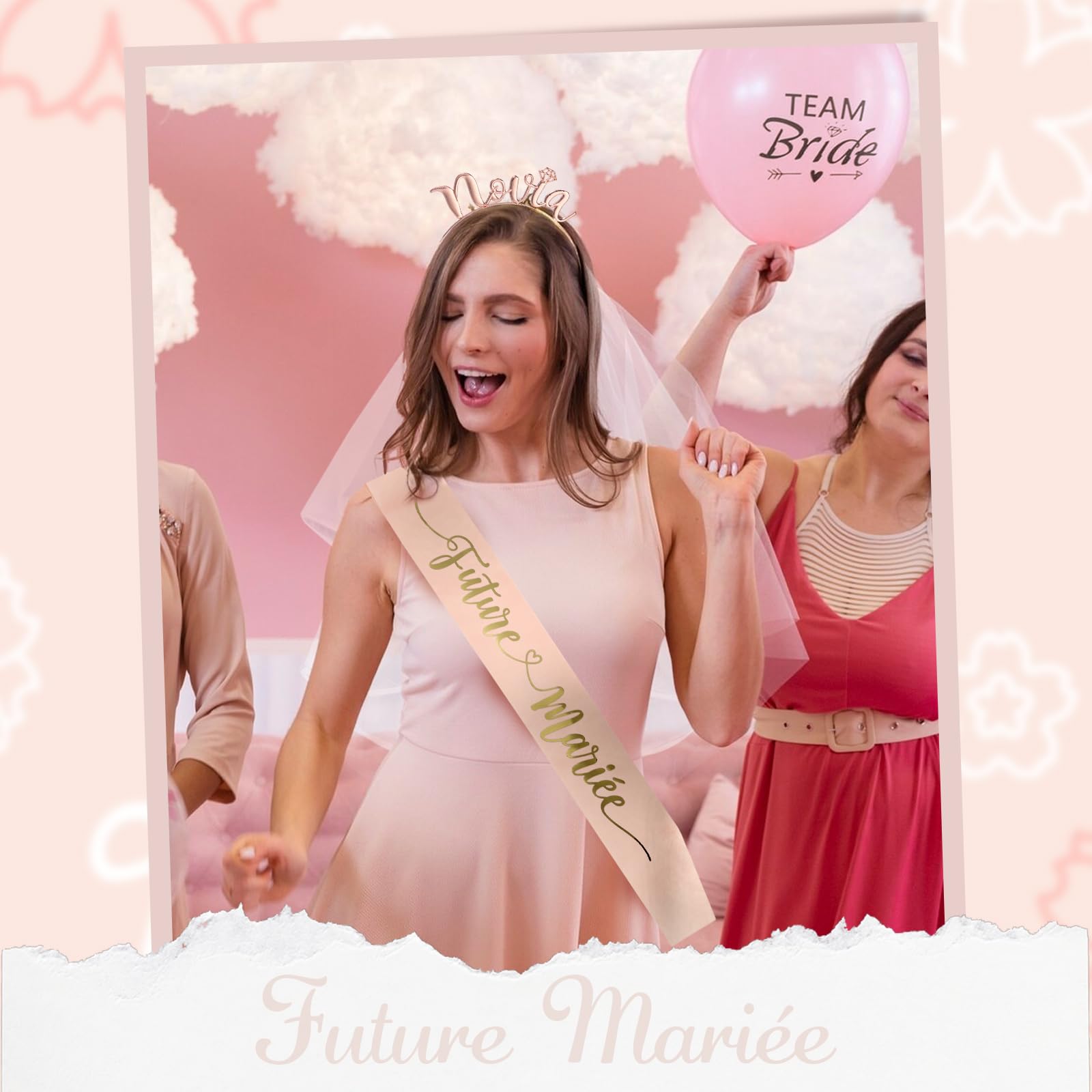 Déguisement Mariée Fille Costume Super Future Mariée - Enterrement De Vie De Jeune Fille - Jour De Fête - Déguisement Adulte - Boutique Jour De Fête Kit Future Mariée Bien évidemment, il ne faudra pas laisser la future mariée se déguiser toute seule. Tutus, colliers, bracelets, perruques, trouvez un accessoire EVJF en commun pour identifier votre groupe. Nous avons tout ce qu’il faut pour se déguiser à l’occasion d’un enterrement de vie de jeune fille Costume EVJF pour future mariée façon déguisement super-héroïne sur Rapid Cadeau Design Romantique & Photogénique : La palette blanc & or rose s'adapte à tous les teintsn ; le détails brillants (paillettes, métal doré) pour des photos Ins réussies ; Le style à la fois chic et amusant pour les jeux d'EVJF et les soirées entre filles. Voile de Future Mariée, Bride to Be, Rose Gold - Aux Feux de la Fête... Multi-Usages : Un must-have pour célébrer la future mariée en toute originalité, ideal pour le déguisement EVJF, le mariage, la douche nuptiale, les fiançailles, les photos pré-mariage, la décoration de fête. Ensemble Élégant pour Future Mariée : 1 serre-tête 'Mariée' en métal doré rose, 1 écharpe 'Future Mariée' en satin polyester, 1 voile blanc romantique à double couche. Les tailles universelles qui sont conçues pour s'adapter à toutes les morphologies garantissent sans inconfort pendant toute la fête ! Décorations de douche nuptiale : le kit de mariée comprend 1 voile blanc avec peigne, 1 bandeau de mariage et 1 diadème de cheveux de mariage en or rose.