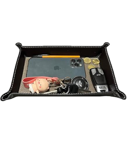 Vide poche en cuir - Créations Danielle - Boutique en ligne de produits Facile à assortir le plateau de rangement de bureau est fabriqué en similicuir PU avec des coutures fines et délicates. La texture est souple et confortable, imperméable et résistante à l'usure, et difficile à déformer. Forme simple et élégante, couleur rétro légère et luxueuse, facile à assortir avec des meubles de style européen. ⚜️ 2 Tailles Le lot contient 1 grand... Vide Poche AIBAOBAO En Cuir, 2 Pièces Plateau Entree, Entree, Plateau Clé Entrée, Pour Portefeuilles, Montres, Clés, Pièces De Vide Poche Cuir Plateau Rangement Vide Poche Simili Cuir, Vide Poche Design Entree Moderne, Vide Poches Plateau Decoratif, Plateau Vide Poche Vert, Plateau Vide Poche Blanc, Plateau En Cuir Marron, Plateau Rangement Clef, Vide Poche Bijoux, Plateau en Cuir pour Table de Chevet, Couloir, Commode, Idées Cadeaux Décrire : 1., La vide poche entree est facile à nettoyer et peut retrouver son nouvel éclat en l'essuyant doucement avec un chiffon humide., 2., Les quatre coins de plateau vide poche sont équipés de boutons-pression qui peuvent être facilement pliés et dépliés et peuvent être facilement rangés dans un sac à main ou un sac., 3., Que ce soit à la maison, au travail ou en déplacement, notre petit plateau en cuir est votre compagnon lorsqu'il s'agit de garder vos affaires bien rangées., 4., Les plateau de rangement simili cuir conviennent non seulement pour ranger de petits objets tels que des rasoirs, des pinces, des coupe-ongles, des peignes, des agrafeuses, des stylos, des crayons, des notes autocollantes, des trombones, etc. Spécifications du produit : Nom du produit : Vide Poche Cuir Matériau du produit : simili cuir Couleur :Noir Taille du produit : comme indiqué sur l'image Objectif : Gardez votre bureau bien rangé Liste de colisage : 2 x Plateau Vide Poche Entree Bureau bien Rangé ] Le vide poche cuir peut stocker de petits objets tels que des clés, des montres, des téléphones portables, de la monnaie, des clés, des bijoux, des pièces de monnaie, des lunettes, des , etc., donnant à votre bureau un aspect propre et bien rangé et économisant de l'espace. ⌚[Inclus]Vous recevrez 2 x plateau vide poche, suffisamment pour répondre... mais servent également d'éléments décoratifs. 🖋️【Matériau】 Le plateau en cuir est fabriqué dans un matériau en cuir de haute qualité avec un aspect exquis, imperméable, résistant aux rayures et facile à nettoyer, avec une longue durée de vie. donnant à votre bureau un aspect propre et bien rangé et économisant de l'espace. 🔑 【Bureau bien Rangé 】 Le vide poche cuir peut stocker de petits objets tels que des clés, des montres, des téléphones portables, de la monnaie, des clés, des bijoux, des pièces de monnaie, des lunettes, des écouteurs, etc.