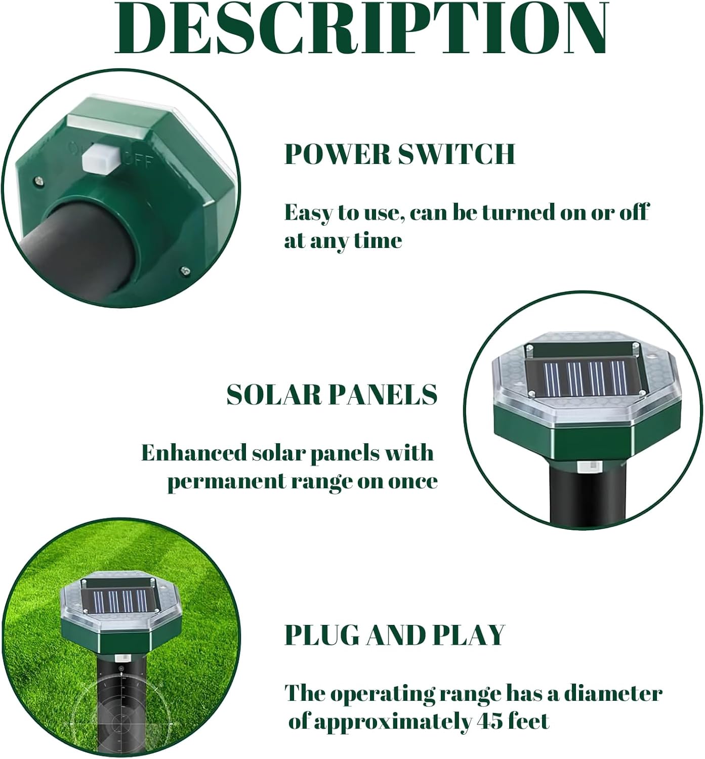 Il repousse efficacement les serpents, les moulins, les gophers, les rongeurs, les rats et les moulins qui loignent dans les champs de gazon, les jardins et les cours. Anti Taupe Répulsif , Eozfly 4 Pièces Répulsifs Anti-Taupes, IP65 Éta Taupe Ultrason Solaire - Équipé de barres de montage pour s'insérer confortablement dans le paysage. Répulsif taupe] Le anti taupe solaire vibration et ultrasons stimule le système nerveux central des souris en vibrant et en émettant des ondes sonores entre 400 et 1000 Hz pour ensuite les chasser. Cela provoque une gêne chez l'animal et peut être retiré sans lui faire de mal Les batteries ne doivent pas être remplacées. ✅ Notre répulseur de souris Sonic émet des impulsions sonores et des ondes ultrasoniques, n'utilise pas de produits chimiques nocifs ou toxiques et est 100% sûr pour les enfants, les animaux domestiques et les humains. 4X Répulsif Taupe Solaire à UltrasonRepulsif Solaire Exterieur Combine Sons et Vibrations Anti... Il est dangereux pour l'homme et l'animal, mais il est recommandé de l'installer en plein air. ✅ 【Défense solaire ultrasonore contre les mauvières émet de fortes ondes de vibration et des pieptens】 Les animaux se sentent mal à l'aise et peuvent être défendus sans leur faire de mal. ✅ Travaille dans un motif circulaire avec un rayon d'environ 15 mètres et couvre une surface allant jusqu'à 120 mètres carrés. Nos 5 Meilleures Repousse Taupe Ultrason en France - Janvier Il s'agit d'un capteur à ultrasons, il est possible d'entendre un bruit silencieux. Choisissez simplement un emplacement optimal pour les rayons solaires afin que les modules solaires puissent recevoir la lumière le plus directement possible et allumez l'interrupteur ON/OFF.