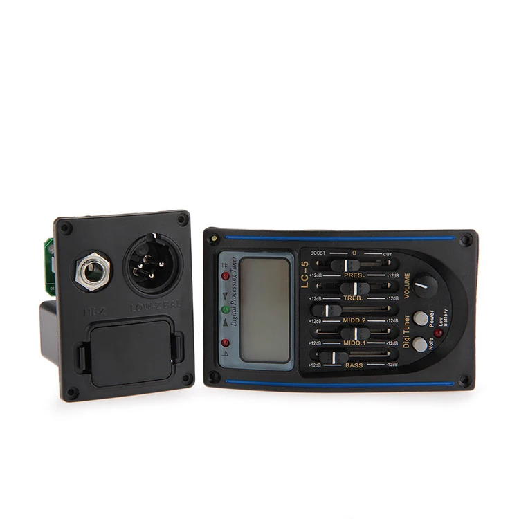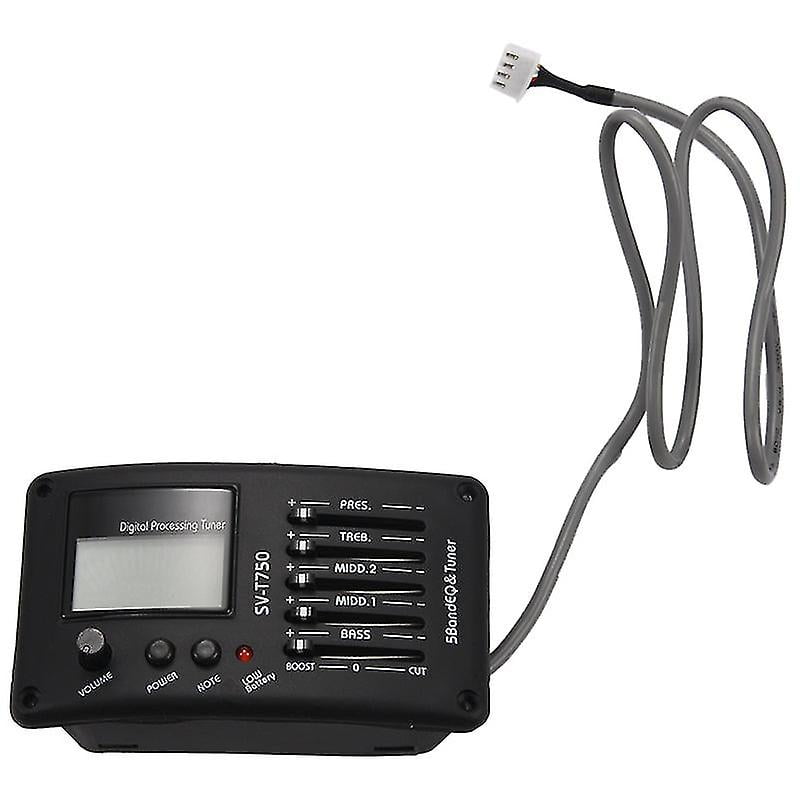 Facile à installer et à utiliser, vous pouvez choisir de l'installer à votre endroit préféré. Apparence élégante, design compact, pas de rétroaction, adapté aux guitares acoustiques, adaptées aux petits spectacles, fête, etc. 137g / 4,8 oz Couleur: noir Camique: Pick-up en céramique piézo Impédance d'entrée: 10mΩ Réponse de fréquence: 20Hz-20KHz Plage de contrôle: basse: (+/-) 12db à 60hz, Middle. alimenté par une batterie 9V et avec un faible indicateur de batterie (la batterie n'est pas incluse). [Indicateur de batterie faible] alimenté par une batterie 9V (non inclus) avec alerte pour le remplacement. Il y a des éponges amorties derrière l'égaliseur et la sortie, pour empêcher la guitare et l'égaliseur de se cogner. tuner: pour obtenir et déterminer la fréquence vibrationnelle de l'entrée sonore à l'égaliseur. JOYO JE-306 5-Band EQ Equalizer Acoustic Guitar Piezo Pickup Preamp... 2: (+/-) Treble: (+/-) 12db à 2,2 kHz, présence: (+/-) 12db à 10 kHz prise de sortie: 6,35 mm xlr prises de sortie Alimentation: 1 * 9v Batterie (non incluse) Taille: env., 9., 4 * 4,7 * 2cm / 3,7 * 1,9 * 0,8 pouce (égaliseur), 5,5 * 4,5 * 5,5cm / 2., 2 * 1,8 * 2,2 pouces (boîte Fonctionnalités: Pickup, égaliseur, tuner, 3 en 1 équipement, pratique pour connecter le son à la sortie de l'amplificateur de haut-parleur de guitare. Spécifications: Condition: tout nouveau Matériau: métal + plastique Poids: Env. Accessoire Guitare Acoustique F? 5T 5 Band Eq Equalizer Pickup Torner Pour Guitare Acoustique Avec écran LED Intégré, Design Compact Et élégant Guitar Tuner China 5 Bands Et-5 Acoustic Guitar Preamp EQ Tuner Brand New Et-5 1: (+/-) 12db à 650hz, Middle.