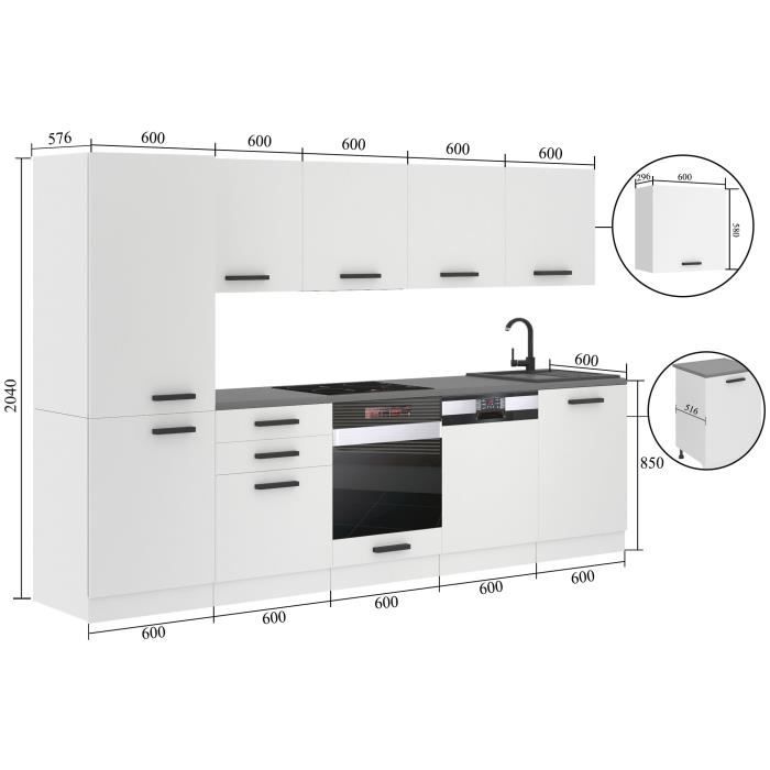 Éclairage en aluminium poli. Nous produisons également des meubles plus efficacement et mieux que les autres entreprises du marché. Fixation professionnelle Fixation professionnelle. Le meuble est monté au mur sur des fixations professionnelles qui permettent une installation professionnelle, facile et rapide. Brand Store Nous vous offrons la possibilité d'acheter des armoires de cuisine individuelles à partir desquelles vous pouvez construire n'importe quel système de cuisine. 3 x armoire haute 60 cm Tous les bords des meubles sont finis en technologie PRO + ultra-durable, toutes les armoires de cuisine ont le système Super Soft-Touch et les armoires de rangement ont des amortisseurs à gaz. Premium Nous proposons des meubles de cuisine PREMIUM. 1 x armoire pour réfrigérateur encastrable 60 cm Plaques de cuisine Nous vous offrons la possibilité d'acheter un plan de travail de cuisine personnalisé et des bandes de raccordement de plan de travail de cuisine. L'éclairage est commandé par un interrupteur tactile et dispose de LED LONG LIFE pour une durée de vie 40 % plus longue. ... 300cm Grace sans plan de travail Sans... L'éclairage pratique L'éclairage très pratique du plan de travail de la cuisine confère à la cuisine une ambiance unique. Comprend tous les matériaux nécessaires pour un assemblage complet et une connexion électrique. 300cm Grace sans plan de travail Spécifications techniques Cuisine Couleurs: Façades: noir très brillant, argent très brillant, rouge très brillant, chêne sonoma, chêne wotan, chêne glamour, ébène royal, châtaignier naturel, blanc mat, argent mat| Plinthes: blanc mat| Pieds: noir | Poignées: Noir profond Dimensions: 300 x 60 cm (LxHxL)| Pieds: 9,5 – 12 cm (H) | Surface de travail: 81 - 86 cm (H), Poids: 170 kg Vicco Cuisine Blanc brillant/Anthracite 300 cm avec armoire haute, sans L'ensemble de cuisine présenté peut être librement combiné, car chaque meuble de cuisine a son propre plan de travail, selon la version, ou il peut également être acheté séparément. Ce meuble de four, avec son design simple, optimise l'espace de votre cuisine et ofe un grand espace pour ranger vos effets personnels ! Le meuble de rangement est r sistant et fonctionnel, tout en gardant votre cuisine plus organis e Le système est inclus dans le kit. Façades Blanc Très Brillant Sans Plan BELINI Cuisine Equipee Complete SOPHIA - 180 Cm. Cuisine Complete Sans Tiroirs Métal Pieds réglables en hauteur Toutes les armoires sont équipées de pieds réglables en hauteur, grâce auxquels vous pouvez facilement compenser les sols inégaux. Tiroirs en métal L'ensemble de meubles de cuisine a des tiroirs en métal avec un système de fermeture silencieux avec mécanisme de roulement, ce qui assure un très grand confort d'utilisation et augmente les paramètres d'utilisation du tiroir d'au moins de moitié. Super-Soft-Touch-System Toucher super doux pour une fermeture silencieuse de toutes les charnières sur toutes les façades du meuble, contrôle de la fermeture des tiroirs et des amortisseurs à gaz. 1 x meuble bas avec tiroirs 60 cm , 1 x meuble bas 60cm Chaque armoire est livrée avec un manuel de montage et le matériel de montage nécessaire.