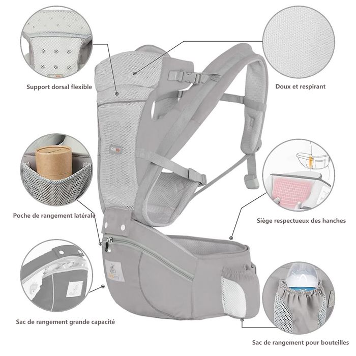 Bretelles rembourrées : Offrent un confort maximal pour les épaules, particulièrement utiles lors de longues périodes de portage. Polyvalence : Plusieurs positions de portage disponibles (ventre, dos, hanche) pour s'adapter aux besoins du bébé et au confort du porteur. Convient aux bébés de 0 à 36 mois. Conception simple de type X : la conception de type X offre un soutien renforcé et une stabilité accrue, répartissant le poids de votre bébé uniformément sur votre dos pour une portabilité prolongée. Porte Bébé Ergonomique, Porte-bébé Ventraux avec Siège à Hanche Coton Ergonomie avancée : Conception étudiée pour un soutien parfait de la tête, du cou et de la colonne vertébrale de bébé, préservant une position physiologique (position en M pour les jambes) Adapté à une utilisation quotidienne, pour des moments de complicité en balade, à la maison ou en voyage. Porte-bébé - Tout Gris Physiologique Et Ergonomique Jusqu'à 20kg... Entretien facile : Lavable en machine pour un nettoyage simple et rapide, tout en conservant la qualité du produit. Doté de sangles ajustables, il assure un maintien parfait pour le bébé et une répartition équilibrée du poids pour les parents. Adaptabilité : Réglages personnalisables permettant d'ajuster le porte-bébé à différentes morphologies de porteurs. Porte Bebe Physiologique Porte-bébé Ergonomique Avec Siège Sur Les Hanches, Léger Et Respirant, Adapté Aux Bébés Et Aux Maille Respirante Nos porte-bébés sont certifiés par des organisations fiables, ofant un soutien ergonomique et favorisant le développement sain des hanches de votre bébé Utilisation toutes saisons : Matériaux adaptés pour maintenir la chaleur en hiver et permettre une ventilation suffisante en été.