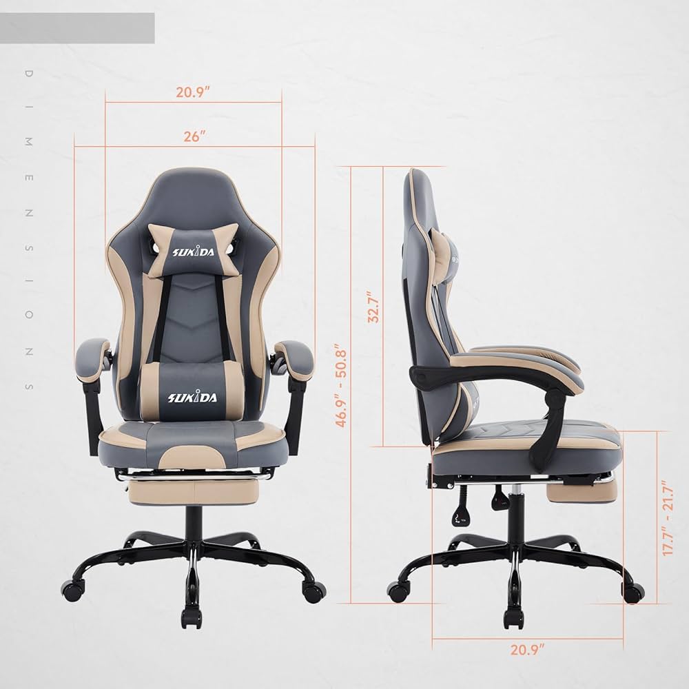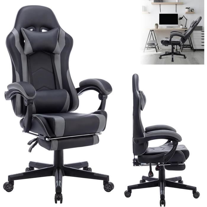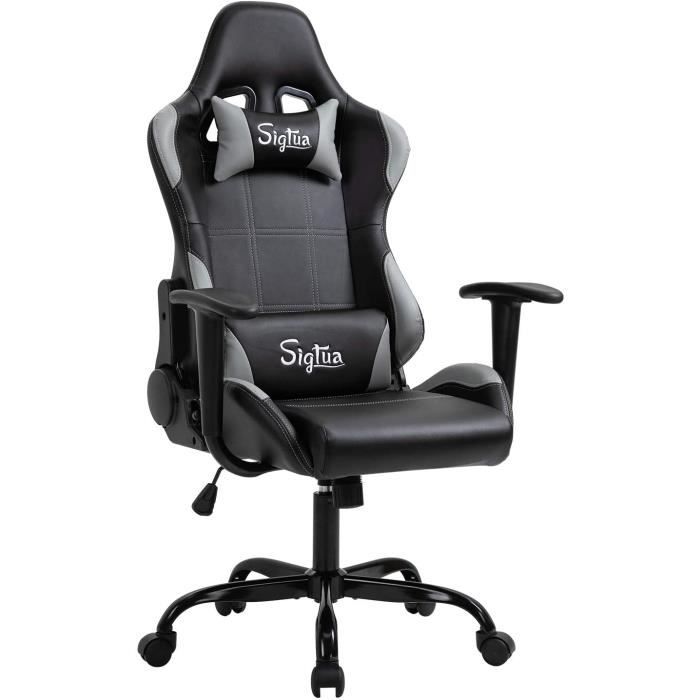 SUKIDA Gamers Choice Chaise de jeu – Chaises de jeu pour Cette chaise de jeu augmente encore la sensation immersive du jeu, permettant aux joueurs de se concentrer davantage sur le jeu. Il peut également être utilisé comme chaise d'étude pour les élèves du collège et du lycée pour se préparer aux examens Chaise Ordinateur Inclinable Support Lombaire Chaise De Bureau Ergonomique - Noir - Appui-Tête Réglable - Support Chaise Ordinateur Ergonomique Chaise de jeu ergonomique : la chaise est recouverte d'un tissu doux au lieu de cuir. L'appui-tête soulage la fatigue, tandis que le coussin doux et le soutien lombaire amovible se complètent mutuellement pour vous offrir une expérience d'assise confortable ultime. Chaise de Bureau Ergonomique - Noir - Appui-Tête Réglable - Support... Grand confort : équipé d'un appui-tête confortable et d'un coussin lombaire, cette chaise de jeu est particulièrement adaptée aux personnes qui souffrent de douleurs au cou dues à de longues heures de travail ou de jeu. Résistantes aux chutes et stables : contrairement aux chaises de jeu traditionnelles avec pieds en plastique, nos chaises de jeu sont fabriquées avec un cadre en métal pour garantir que les chaises sont stables sans rouiller ni se casser. Si vous rencontrez des problèmes lors de l'installation et de l'utilisation, vous pouvez toujours contacter notre service client qui vous aidera. Service client : la chaise est livrée avec des instructions détaillées pour une installation facile.